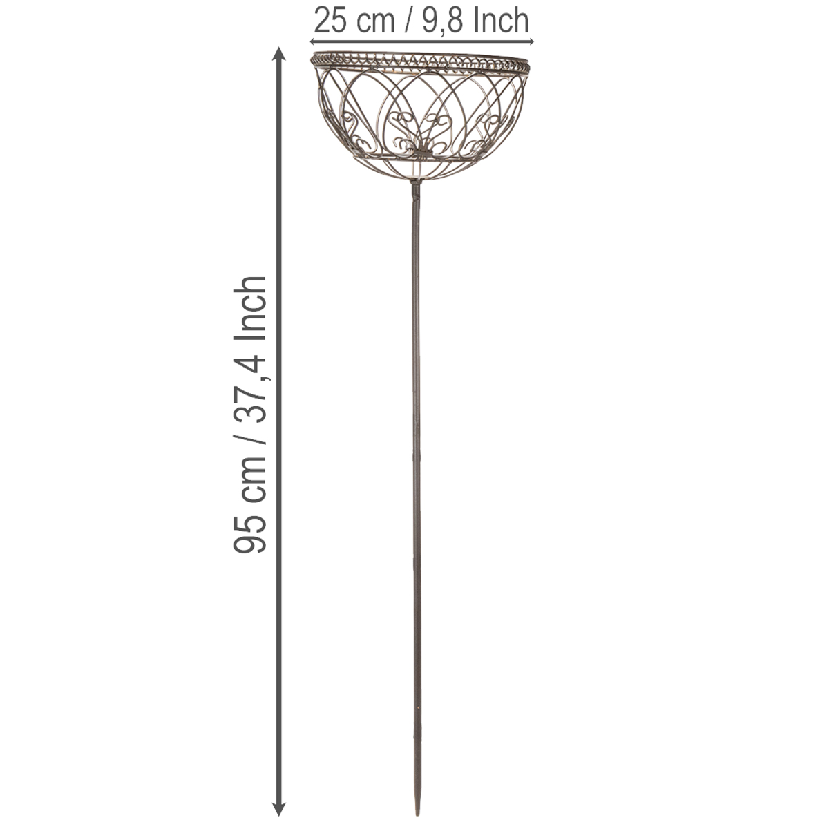 Ge din trädgård, uteplats eller balkong en touch av romantik med denna dekorativa metallkorg i vintagestil. Tillverkad av robust, brunmålad metall är denna högkvalitativa trädgårdskorg perfekt för skyddade utomhusområden. Med en höjd på 95 centimeter och en diameter på 25 centimeter utstrålar den elegans och kommer garanterat att fånga blickarna. Oavsett om den används som en dekorativ skål i trädgården, ett elegant spaljé i vintagestil eller en krukhållare för din uteplats, skapar denna metallkorg en charmig atmosfär och imponerar med sin mångsidighet.