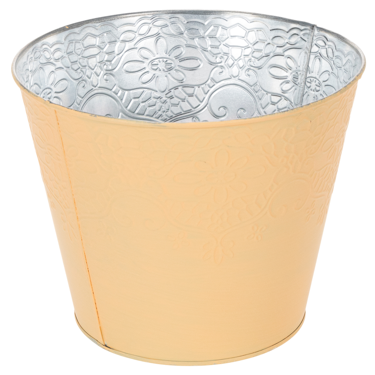 Krukan är omålad på insidan, det vill säga naturligt silverfärgad, och har en galvaniserad botten. För plantering är det också lämpligt att fodra blomkrukan med folie.