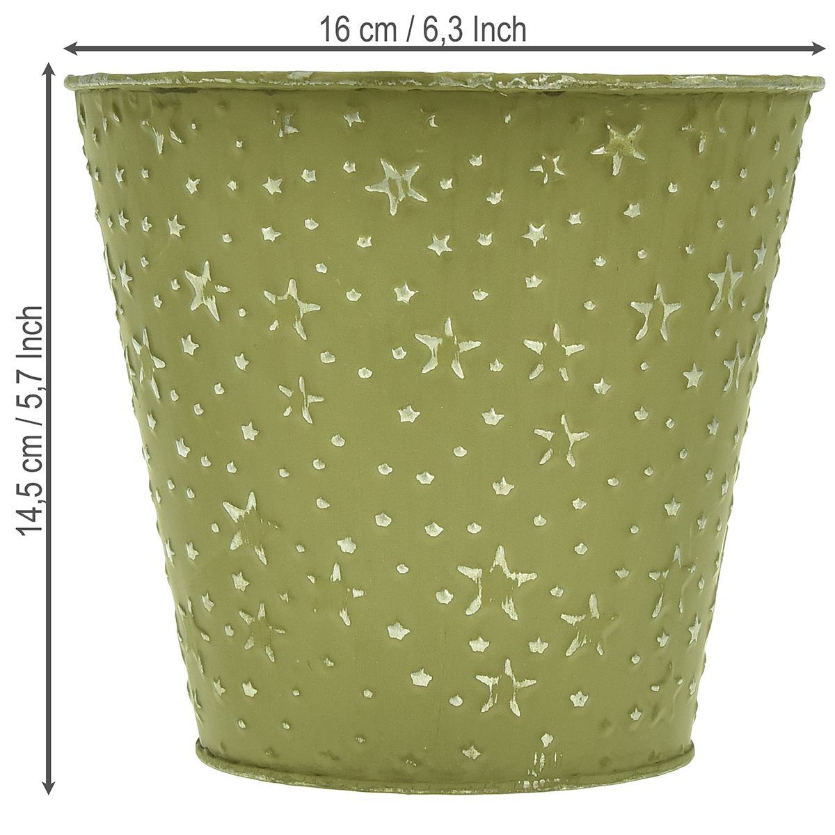 Metallkruka, planteringsburk, stjärnor, grön och silver, Ø16 cm