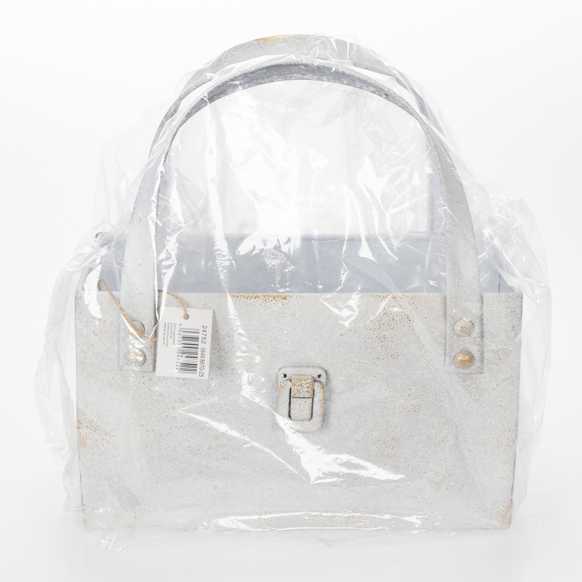 Denna metallväska kombinerar modern design med tidlös, rustik charm. Det robusta handtaget gör den inte bara enkel att bära utan också en riktig blickfångare. Den lätt åldrade vintage-finishen ger en särskilt elegant touch och smälter vackert in i en mängd olika inredningsstilar, från lantlig till industriell. Vill du använda denna dekorativa metallväska som en kruka? Inga problem! Den är perfekt för att elegant visa upp små blomsterarrangemang eller suckulenter. Säsongsbetonade accenter, som höstdekorationer med pumpor eller ett jularrangemang fyllt med grangrenar, ser också fantastiska ut i denna väska. Lika praktisk: Använd väskan som en arrangör för trädgårdsredskap som saxar eller handskar. Detta håller allt inom räckhåll och ser attraktivt ut. Den neutrala, mattgrå färgen kompletterar nästan vilken miljö som helst och harmoniserar underbart med andra dekorativa element. Kombinera till exempel metallväskan med våra enkla glasvaser eller rustika träskålar från Floristik24 för att skapa ännu mer harmoni i din inredning. En riktig allrounder!
