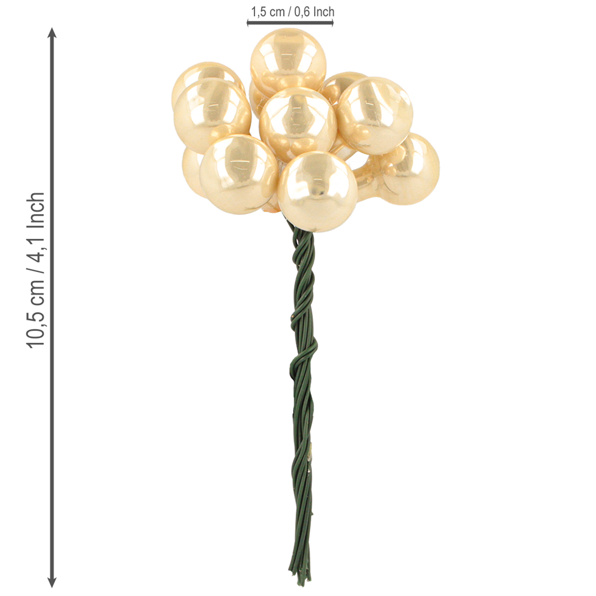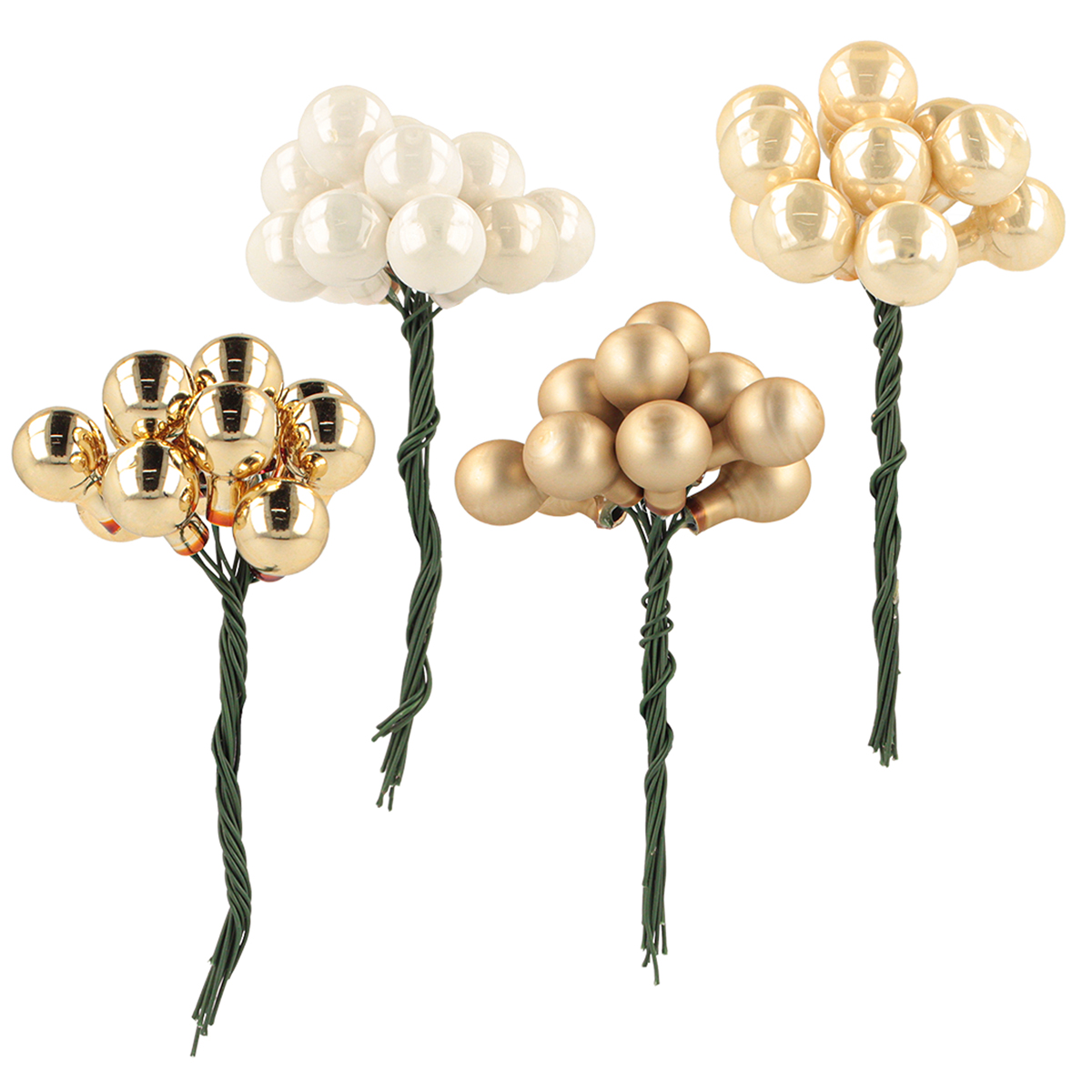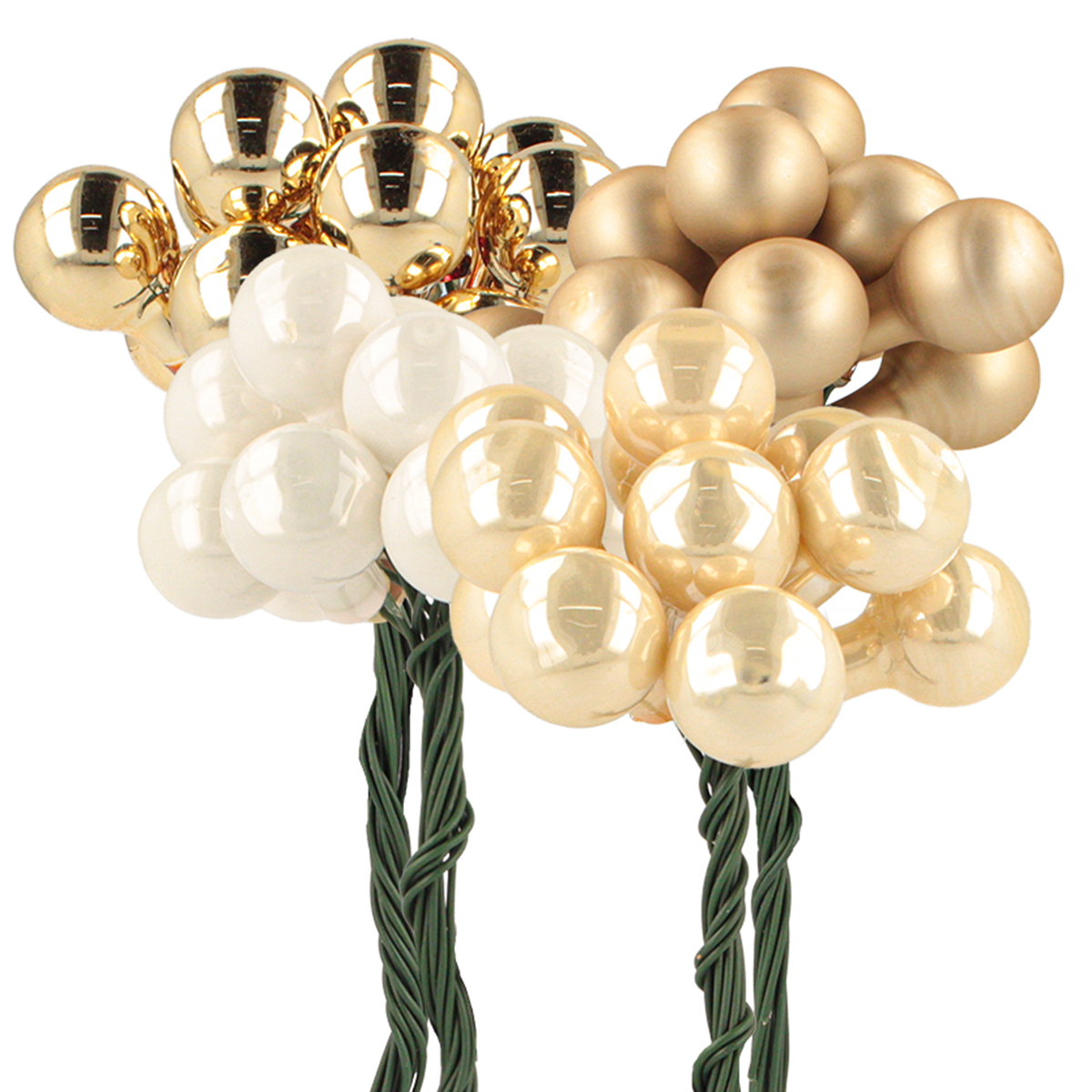 Produktnamn: Mini julkulor på tråd guld, kräm Ø1,5 cm 140 st