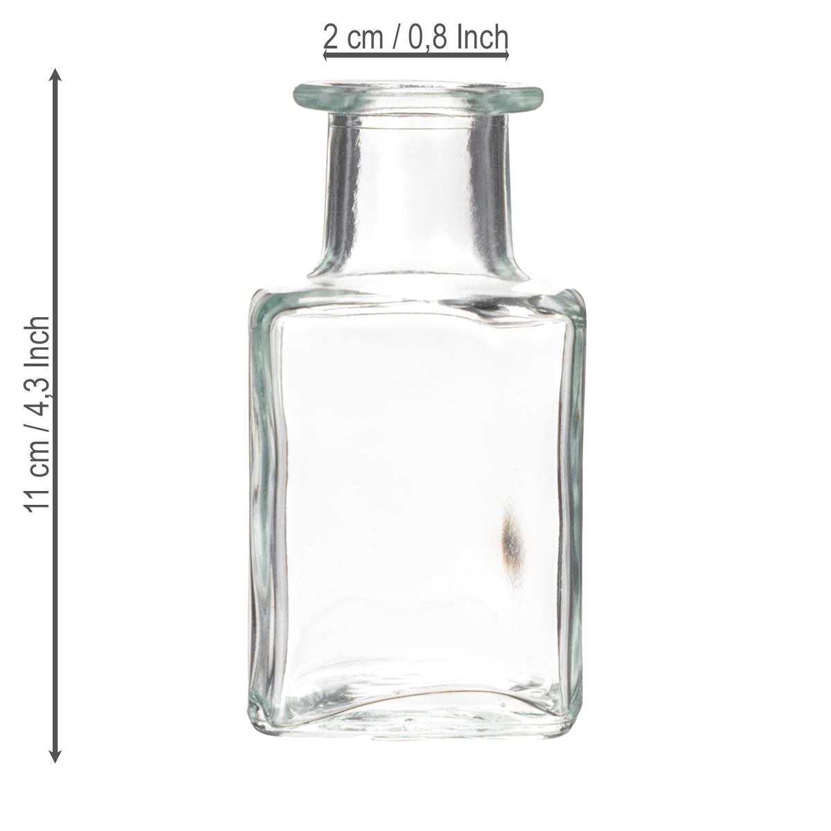 Vår minivas i klarglas kombinerar funktionalitet och stil. Dess transparenta utseende ger den en tidlös elegans – perfekt för moderna inredningar och älskare av minimalistisk design. Med sin fyrkantiga bas är den inte bara extremt stabil utan också estetiskt tilltalande. Med en längd på 5 cm och en bredd på 5 cm har den en välbalanserad form. Samtidigt är dess höjd på 11 cm idealisk för små buketter, enskilda blommor eller torkade blomsterarrangemang.