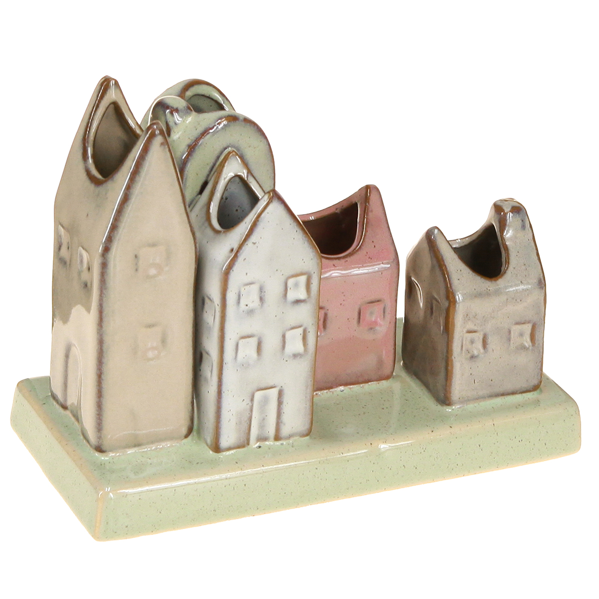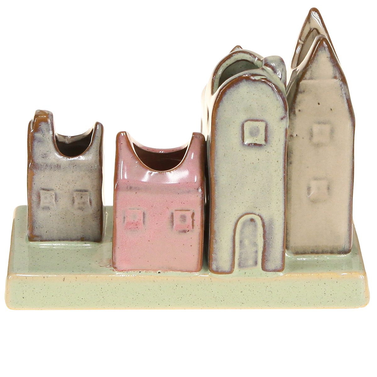 Charmig, lekfull och helt enkelt förtrollande – denna uppsättning minivaser formade som färgglada hus är ett riktigt blickfång för alla dukningar. Tänk dig dessa små, handgjorda keramiska vaser i form av hus som står mitt på ditt bord och livar upp atmosfären med en touch av individualitet och mysighet. Oavsett om det är på vardagsrumsbordet, matbordet eller i arbetsrummet – de små minivaserna i mjuka färger som grönt, rosa och grått harmoniserar perfekt med färska blommor och ger en touch av vår. Samtidigt utstrålar deras kreativa design i form av små hus en modern och tidlös stil. Perfekt för att lägga till det där lilla extra till din bordsdekoration eller helt enkelt som en charmig present till dina nära och kära. Hitta din favoritanvändning för denna kreativa vasuppsättning!