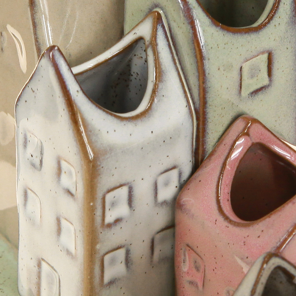 Minivasset, färgglada hus för bordsdekoration, 14 cm