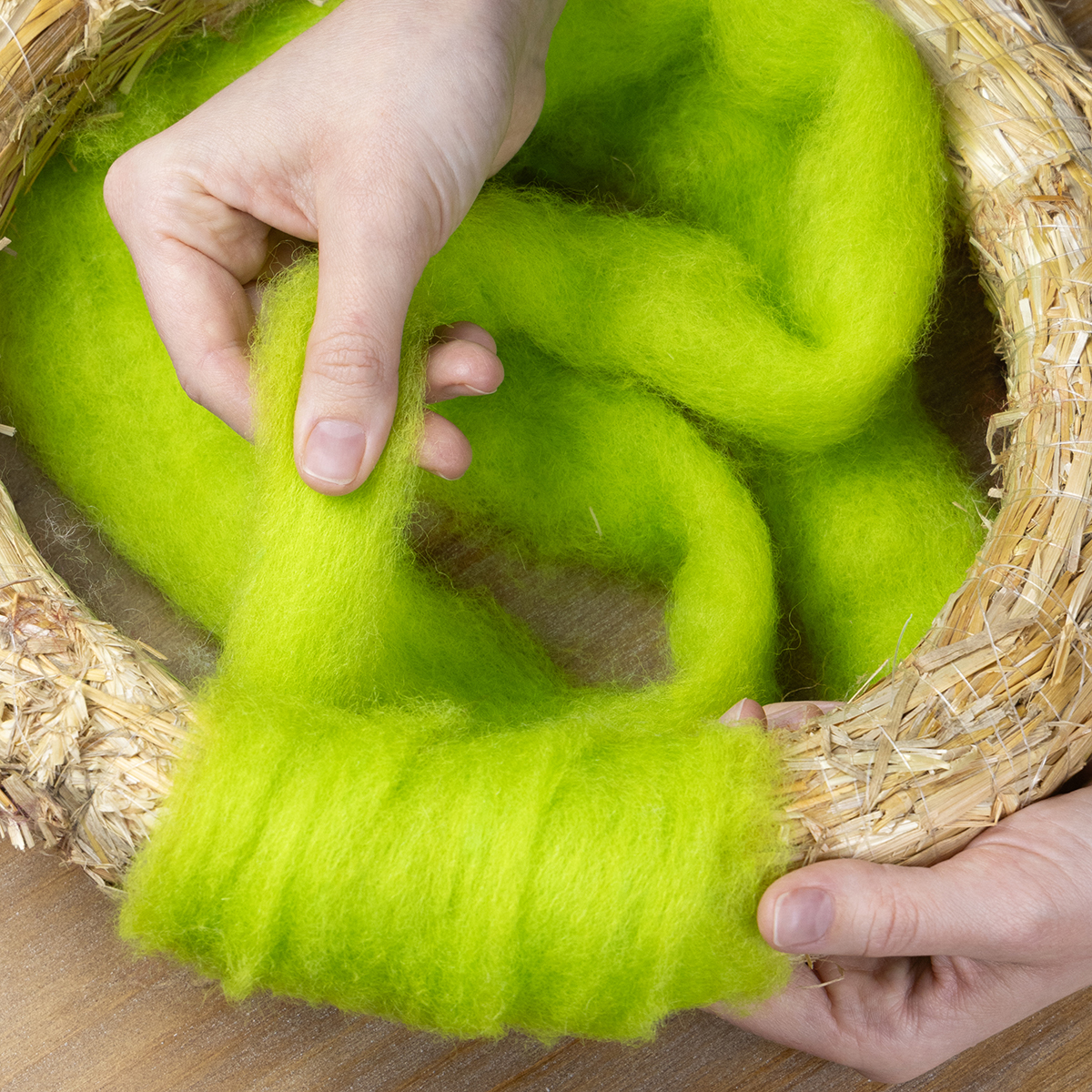 Produktnamn: Mjukt filtat ullgarn för dekorativa mönster och säsongsbetonade arrangemang, 2m grön