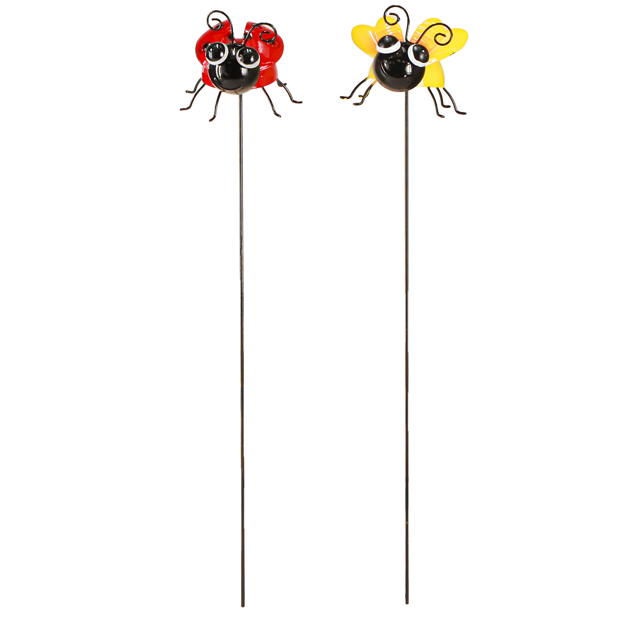 Nyckelpiga och bi med pinne Trädgårdsdekoration Metall 46cm 2st