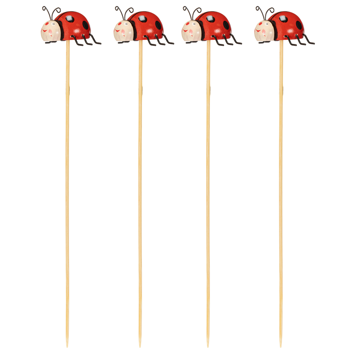 Nyckelpiga trädgårdspålar, dekoration för vår och sommar, blomsterdekoration, 31 cm, 4 stycken