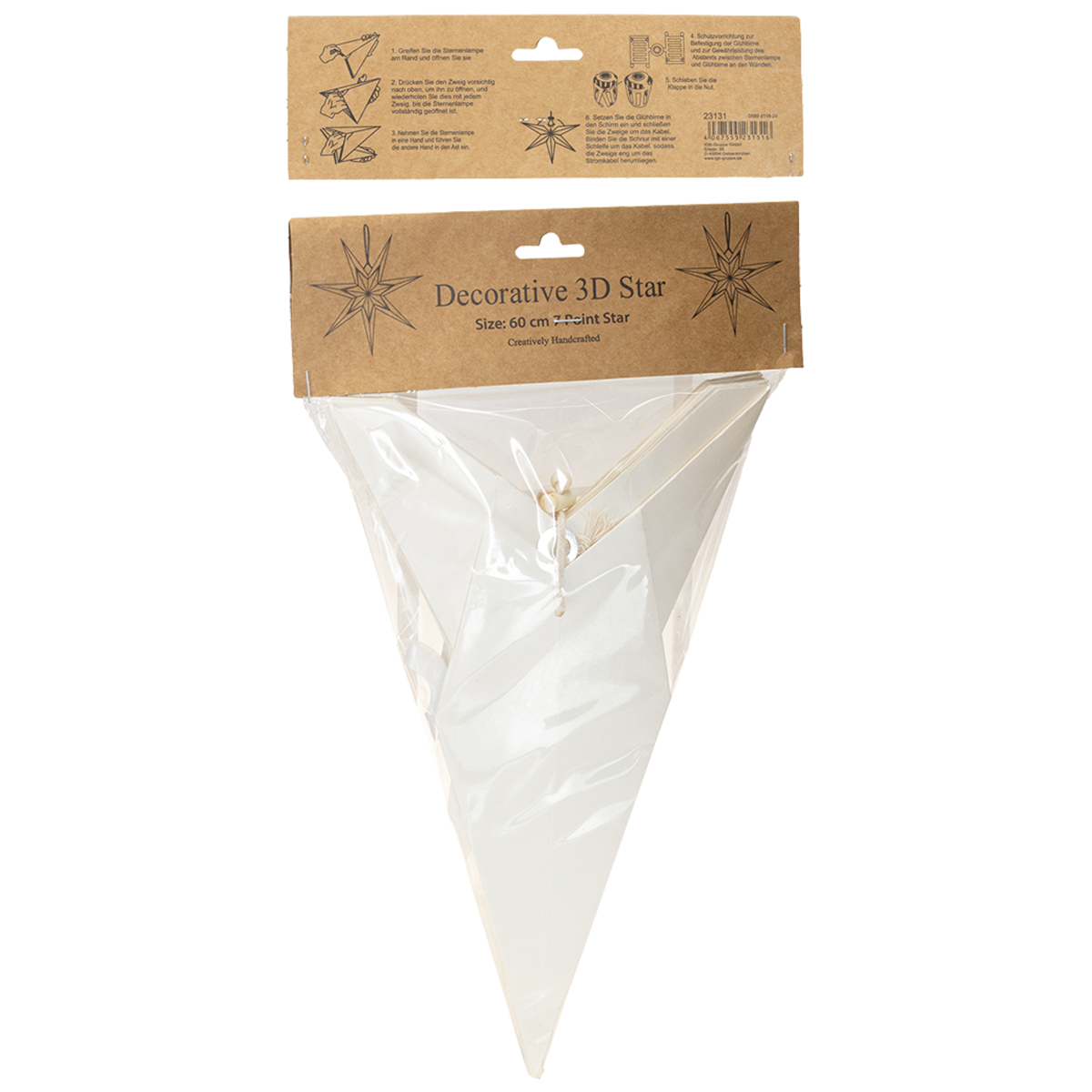 Pappersstjärna, krämvit, stor hängande stjärna, 60 cm