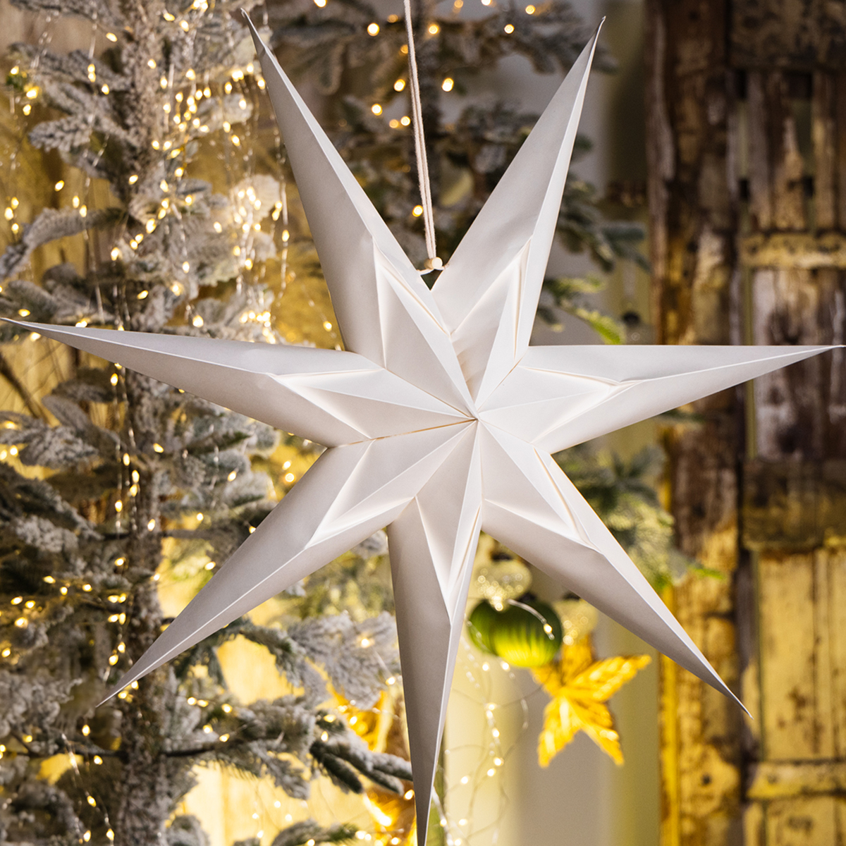 Pappersstjärna i krämvitt: en festlig blickfångare för upphängning och belysning