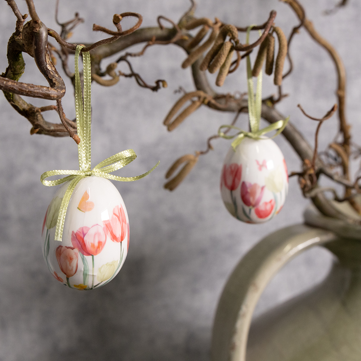 Påskäggsdekoration med tulpanmotiv och band: Den perfekta blickfångaren för dina vårdekorationer