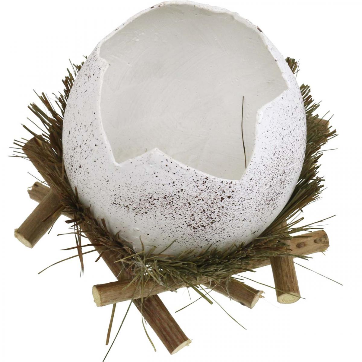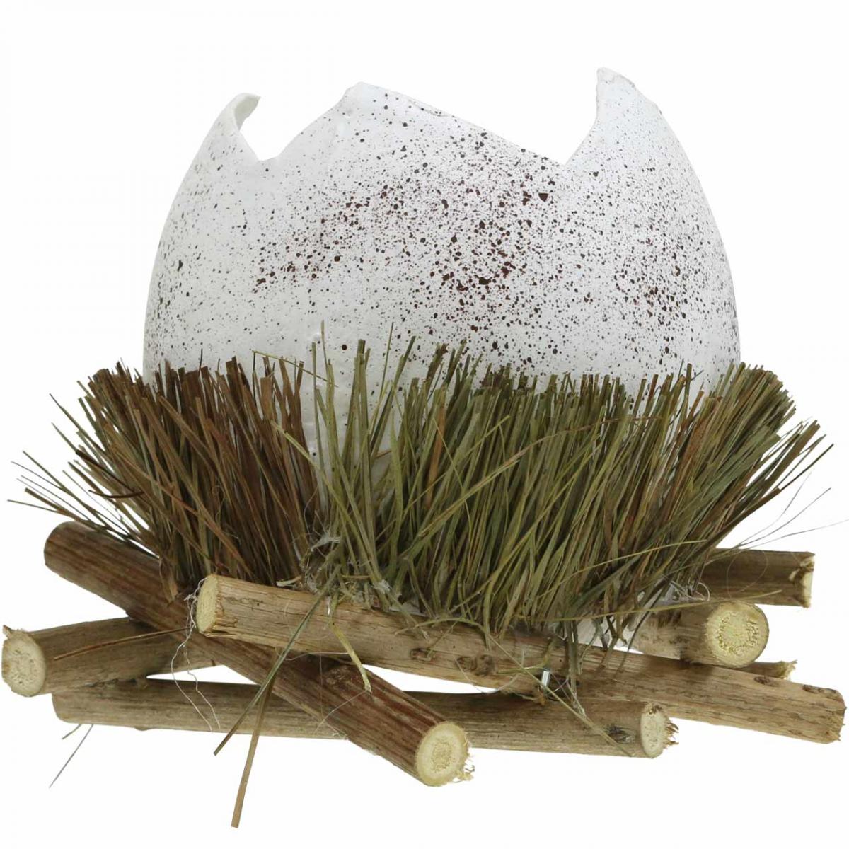 Påskdekoration, ägg i ett bo, dekorativt ägg, fågelbo Ø9cm H10cm Vit, naturliga färger 4 stycken