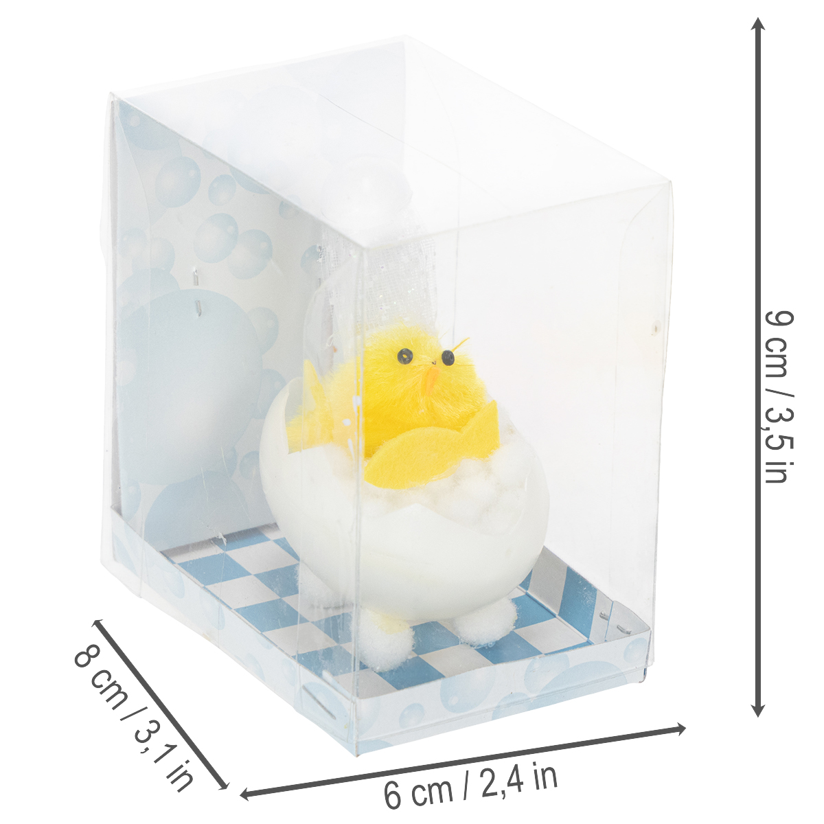 Påskdekoration av kyckling, chenillekyckling i badkaret, gul, 9 cm
