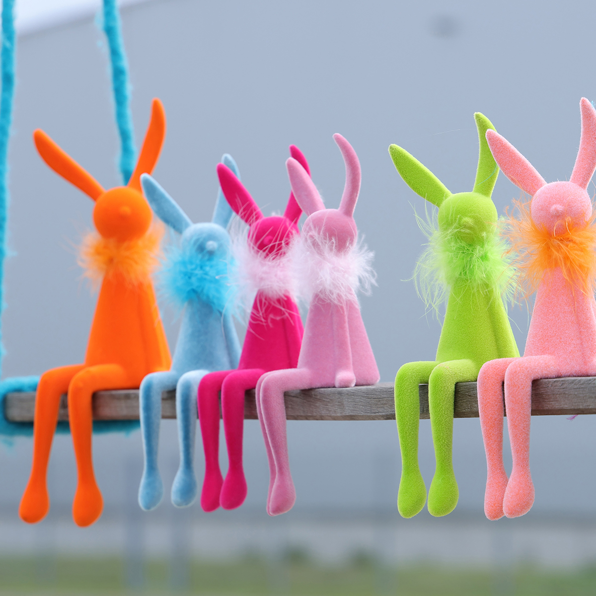 Våra påskharedekorationer imponerar med sin lyckade kombination av stil och funktionalitet. Deras speciella hyllform gör att de kan placeras perfekt på kanten av vilken horisontell yta som helst med till synes nonchalant dinglande ben och tar minimalt med plats. De ser särskilt kreativa ut på ett skänk i vardagsrummet, en hylla eller till och med i en vårinspirerad entré. Fjäderboan ger dem ett elegant men ändå lekfullt lätt utseende som värmer hjärtat.