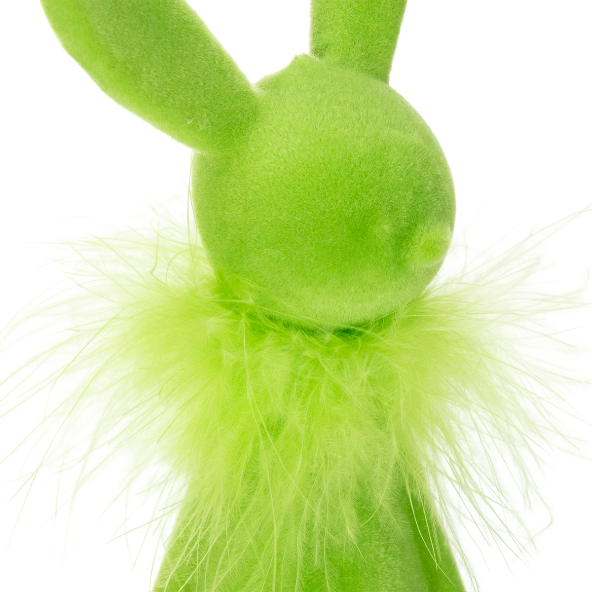 Känner du igen den där känslan? Våren närmar sig och du vill förvandla ditt hem till en mysig men ändå livfull våroas. Vår sittande påskharedekoration i plast är den perfekta höjdpunkten för dina påsk- och vårdekorationer. Med en höjd på 27 cm och konstnärligt utformade detaljer ger denna dekorativa figur färg och glädje till alla hem. Oavsett om den står på fönsterbrädan, som bordsdekoration eller helt enkelt på en hylla i vardagsrummet ser denna charmiga hare alltid fantastisk ut. Setet innehåller två påskharar i olika nyanser av grönt – en ljusgrön och en mörkgrön – var och en prydd med en subtil fjäderboa. Helt enkelt charmigt: en tidlös kombination av glädje och modern design som smälter sömlöst in i alla stilar.