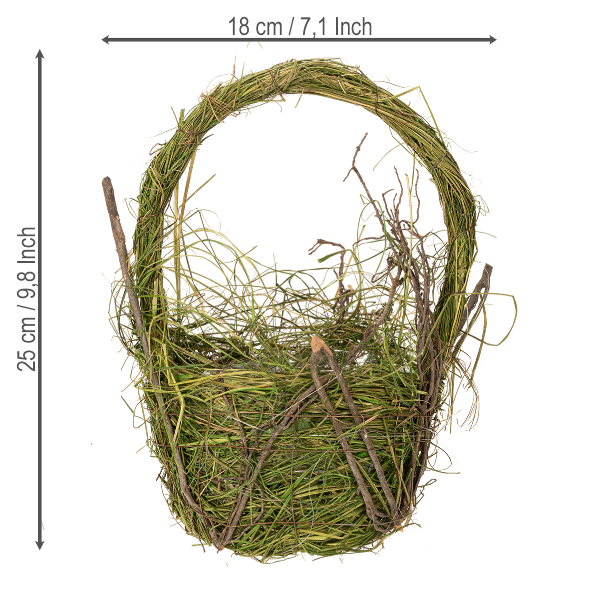 Vad sägs om att göra årets påsk ännu mer naturlig och hållbar? Denna handgjorda påskkorg tillverkad av naturmaterial kommer att ge ditt hem en lugnande men festlig atmosfär. Vid första anblicken av dess gräsbevuxna design kommer du omedelbart att förflyttas till våren och framkalla bilder av friska påsklingar. Oavsett om den används som ett påskbo för små överraskningar, ett rustikt dekorativt element för ditt festbord eller en naturlig blomkruka, ger denna korg naturlig elegans till vilket hem som helst. Låt dess charmiga utseende förtrolla dig och dekorera den till ditt hjärtas belåtenhet. Praktisk, miljövänlig och helt enkelt vacker – en påskkorg som verkligen imponerar!