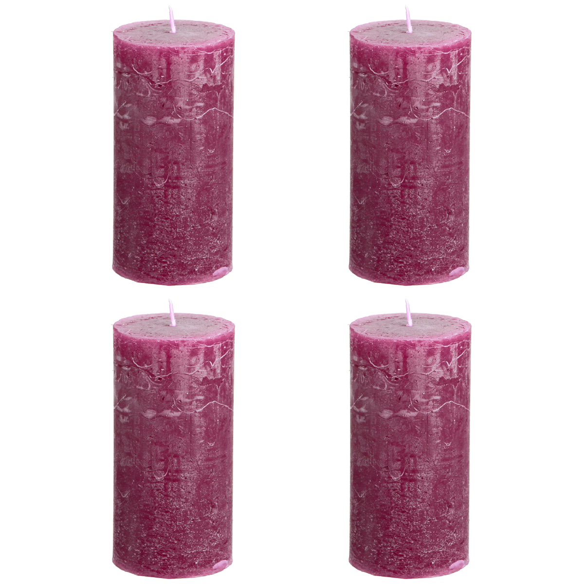 - Fyra högkvalitativa enfärgade pelarljus i elegant lila (bär)