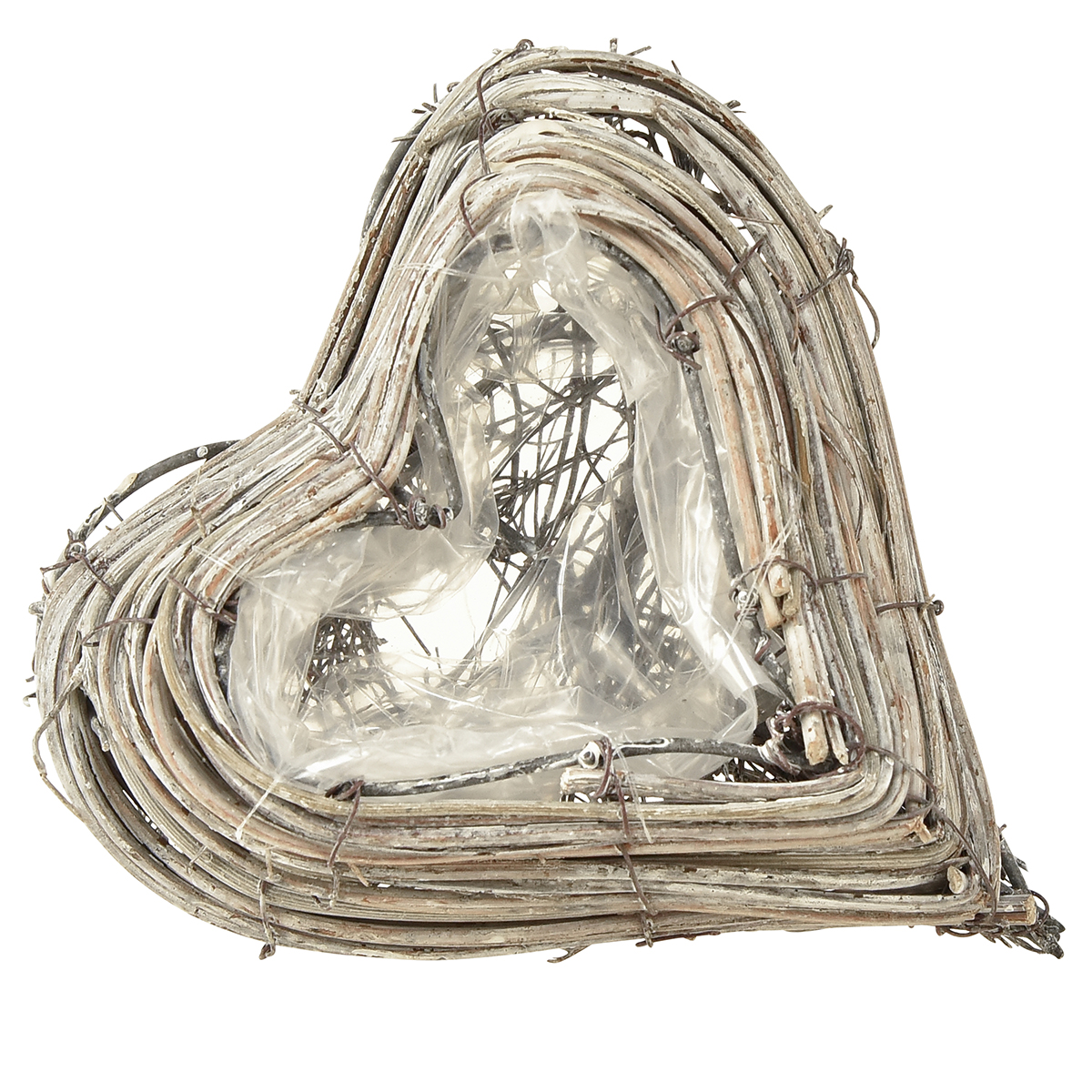 Rottingväxthjärtat presenterar sig inte bara i stilig shabby chic - det imponerar också med sina praktiska aspekter. Tack vare det robusta utförandet med ett metallhjärta som bas och ett foliefoder kan växter sättas in direkt i skålen och unika blomkreationer skapas. De naturliga, vitkalkade rottinggrenarna passar perfekt till ett brett utbud av inredningsstilar och dekorationer och gör hjärtformen till ett behagligt blickfång.