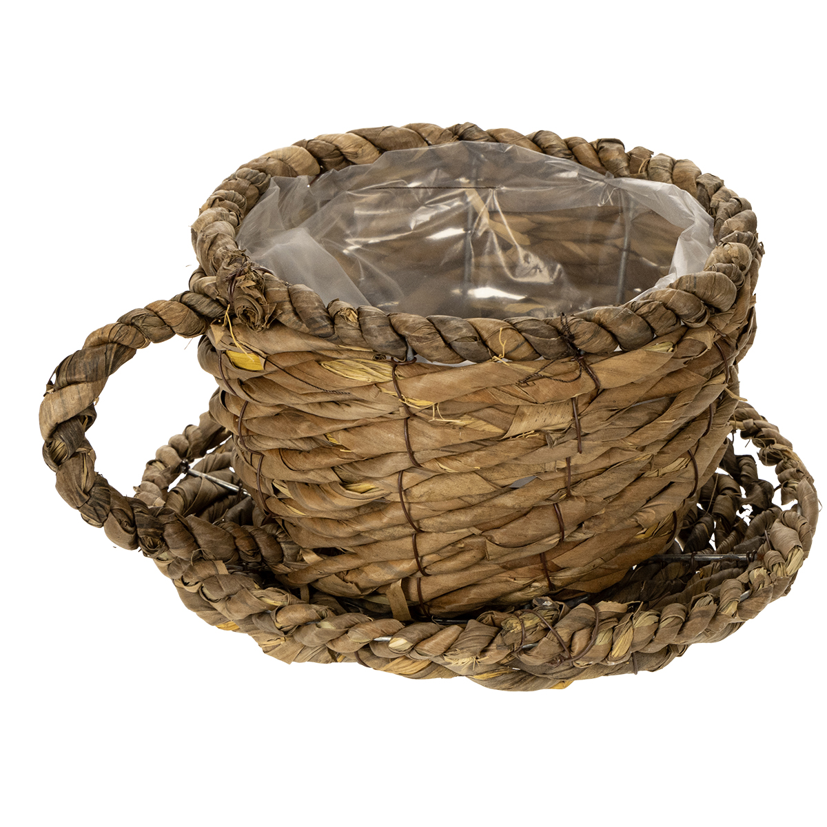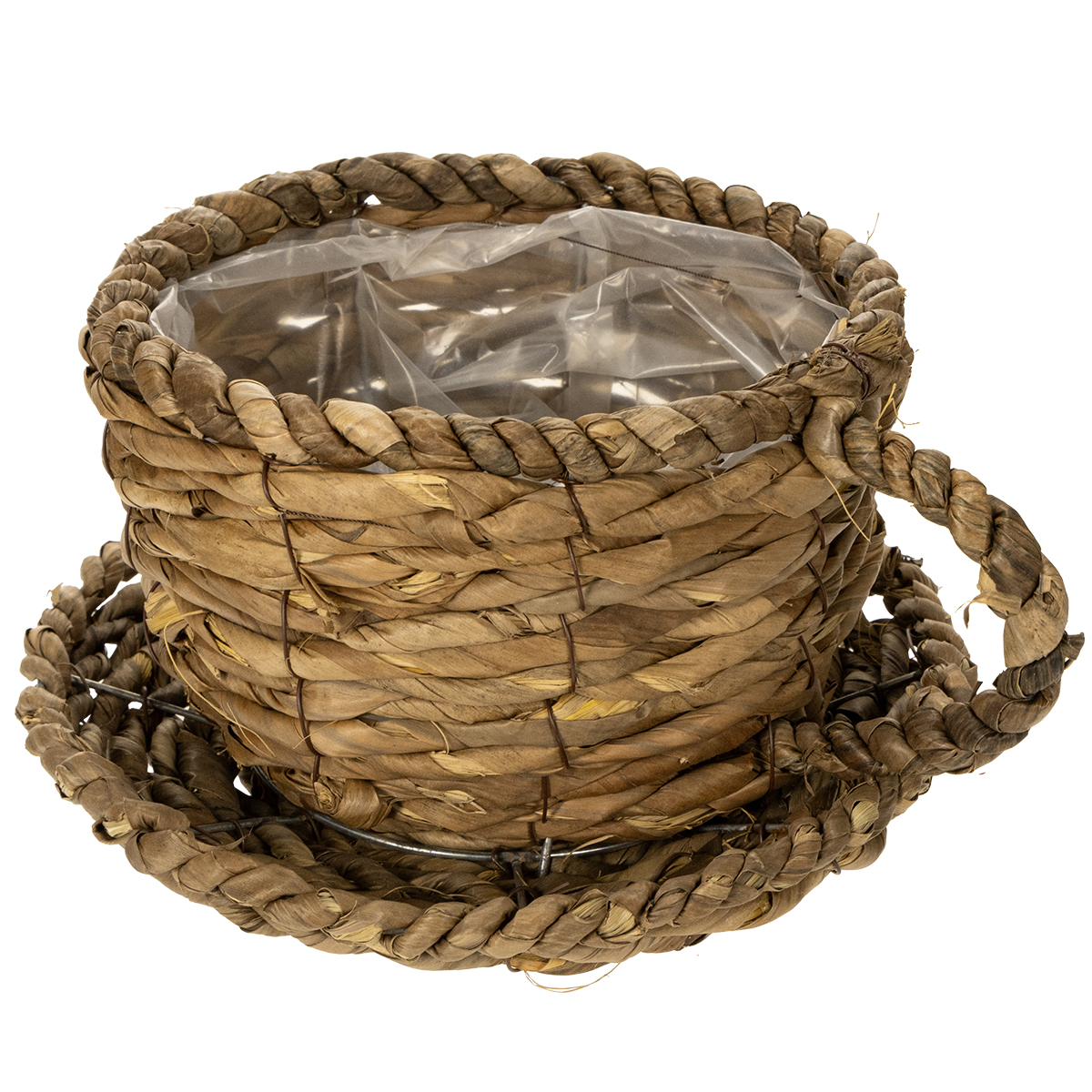 Planteringskopp med fat, liten planteringskorg av halm, Ø17cm H13cm