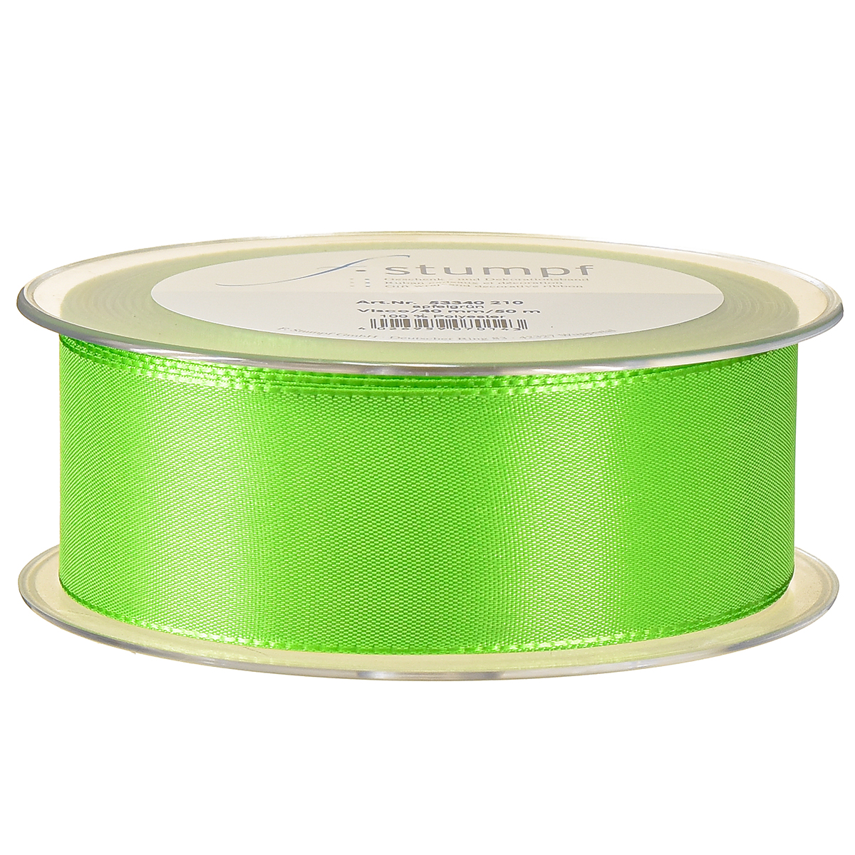 Present- eller dekorationsbandet i ljusgrönt är cirka 40 millimeter brett och cirka 50 meter långt. Den var gjord av 100% polyester.