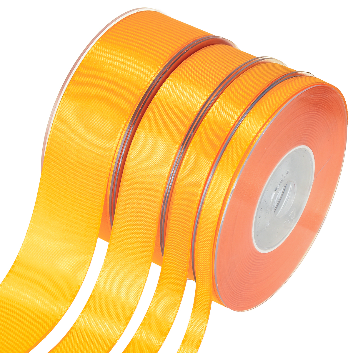 Gåvan och det dekorativa bandet i orange är lindat på en plastrulle. Varje variant har en längd på cirka 50 meter.