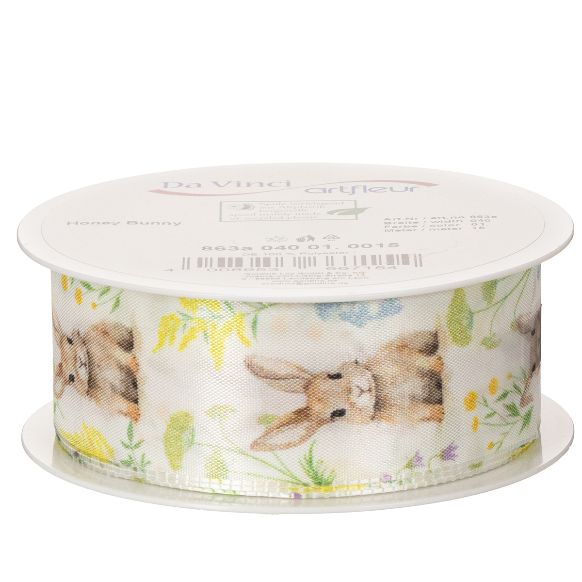 Produktnamn: Presentband med påskharemotiv för festlig förpackning, 15 m