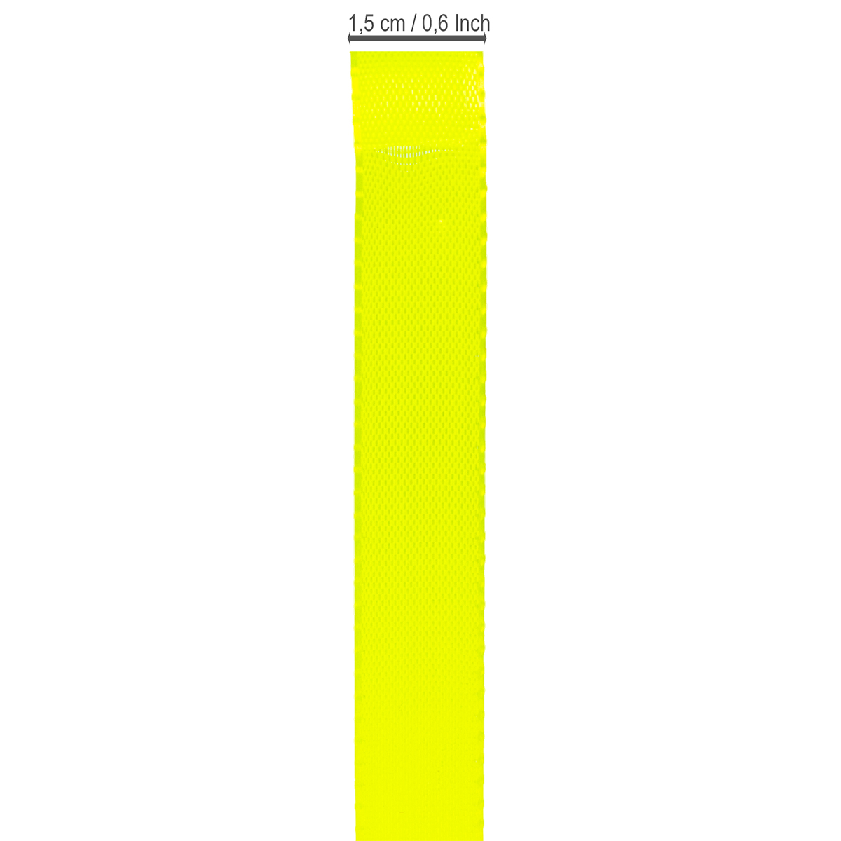 Detta band är mer än bara ett dekorativt element – det är en riktig blickfångare! Med en bredd på 15 mm är det otroligt mångsidigt. Den livfulla neonfärgen drar omedelbart uppmärksamhet till sig och kompletterar perfekt moderna och trendiga designer, samtidigt som det ger en fräsch, livfull touch till klassiska förpackningar. Tillverkat av högkvalitativ polyester är detta band robust och hållbart. Ingen sönderrivning eller fransning! Oavsett om du skapar en elegant rosett för presentinslagning eller ger en sista touch till kreativa hantverksprojekt, levererar detta band vad det lovar.