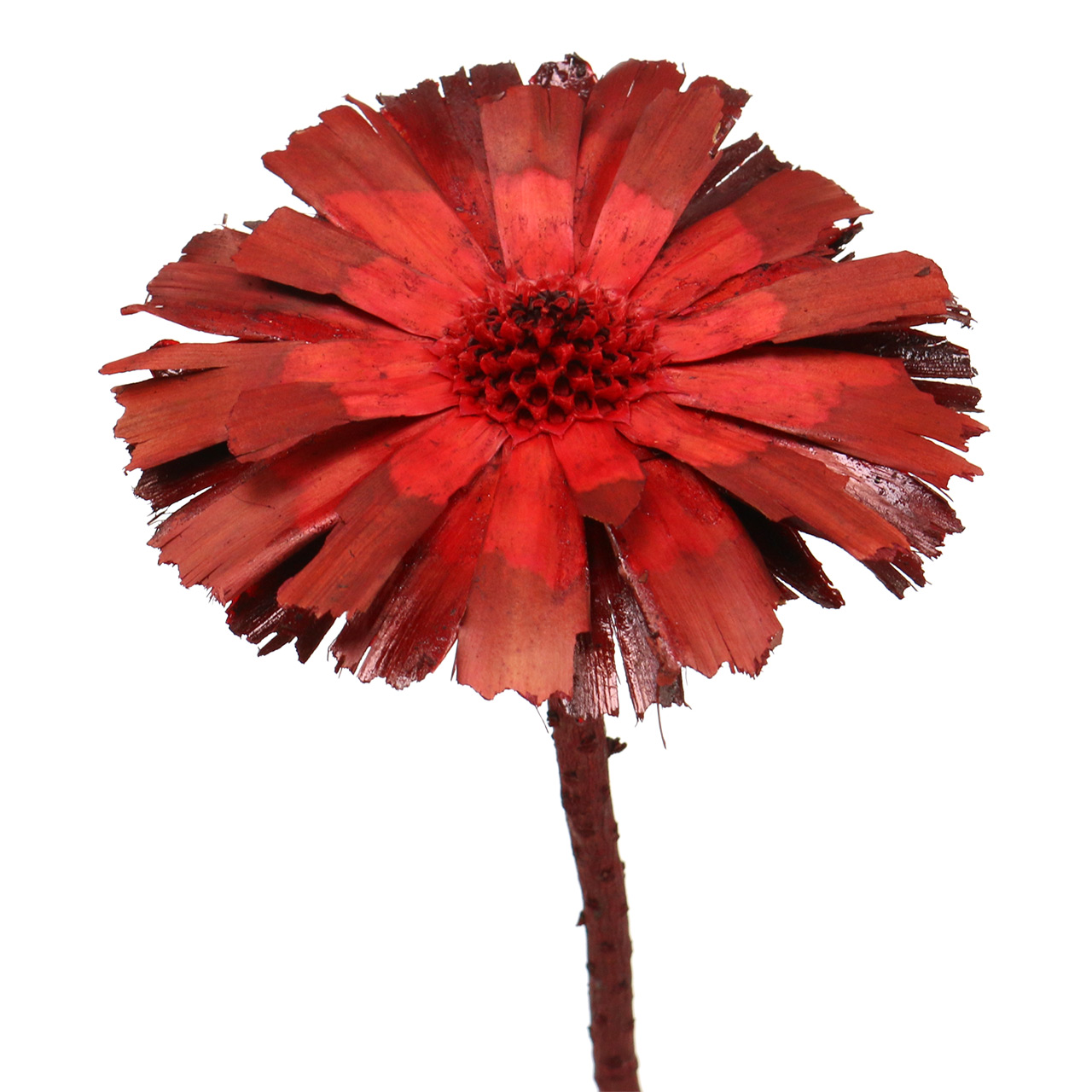 Dessa fascinerande vackra, oförglömliga blommhuvuden är sockerbusken. Dessa buskar kallas också silverträd, caproses eller fjäderbuskar och är symbolerna i Sydafrika. Här får du rosetten från en Protea Repens, som det botaniska namnet är, i torkad form och en mild röd färg.