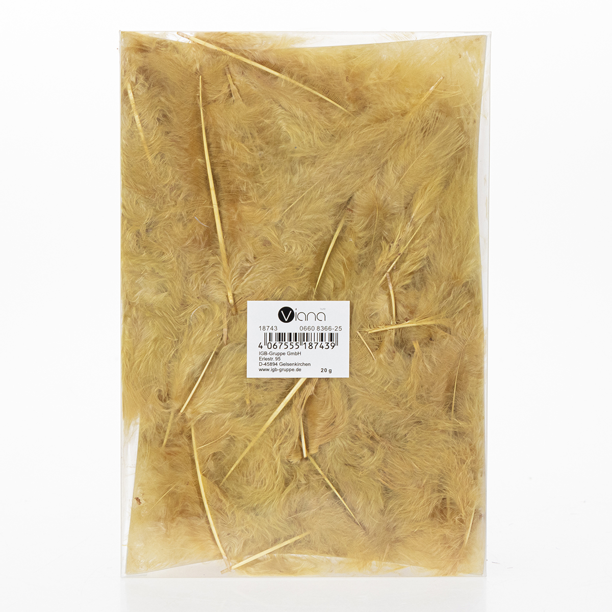 - Riktiga, fluffiga fågelfjädrar i ljusgult