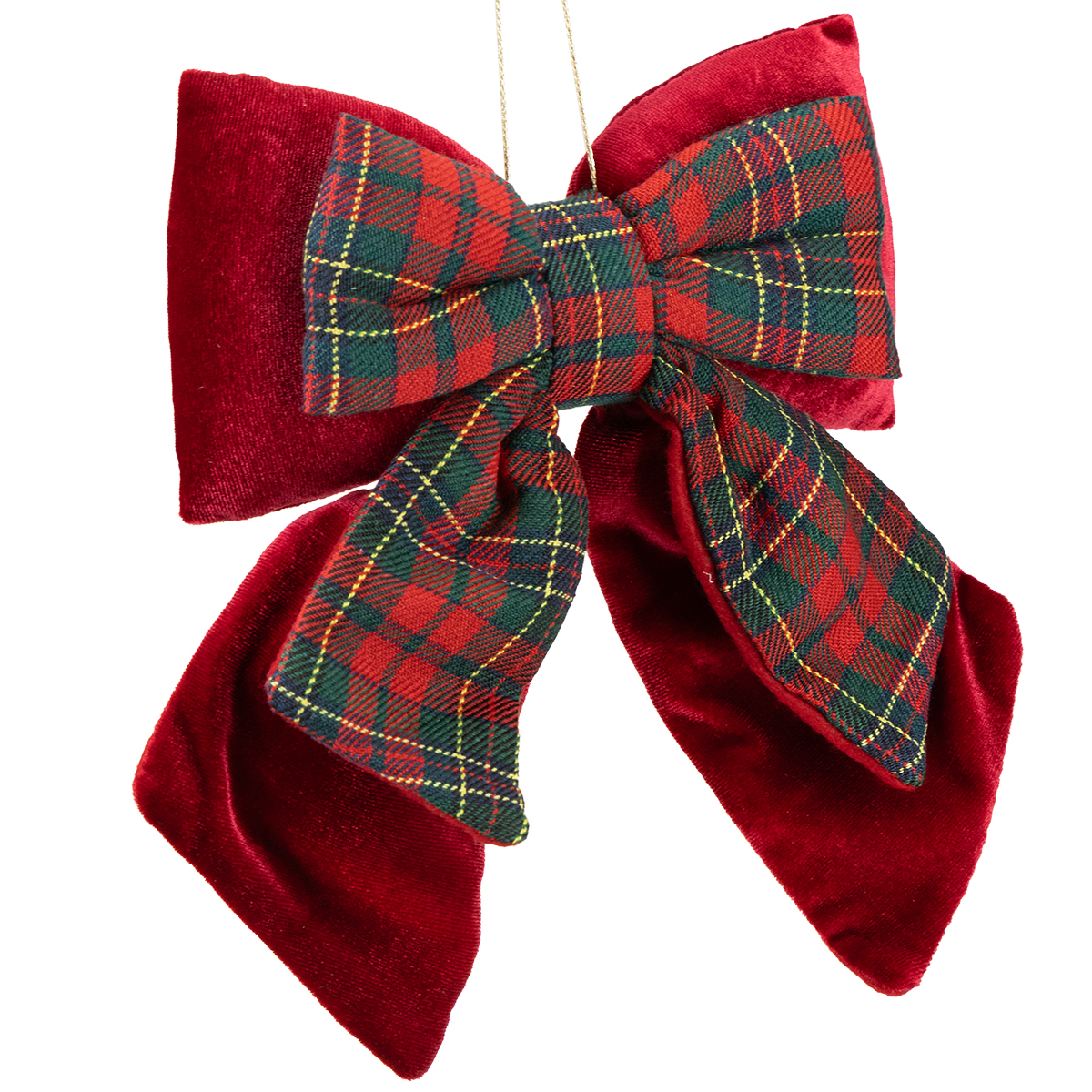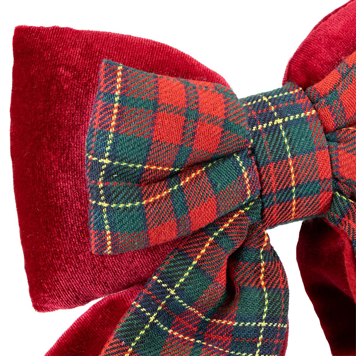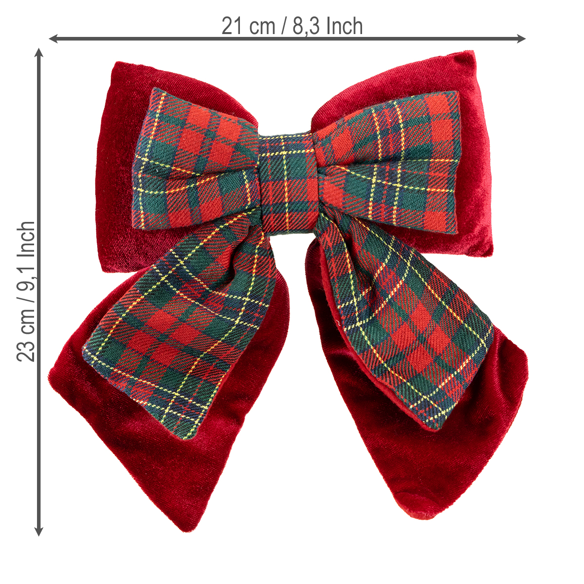 Produktnamn: Röd skotsk plädrosett i sammet inomhus 21×23 cm
