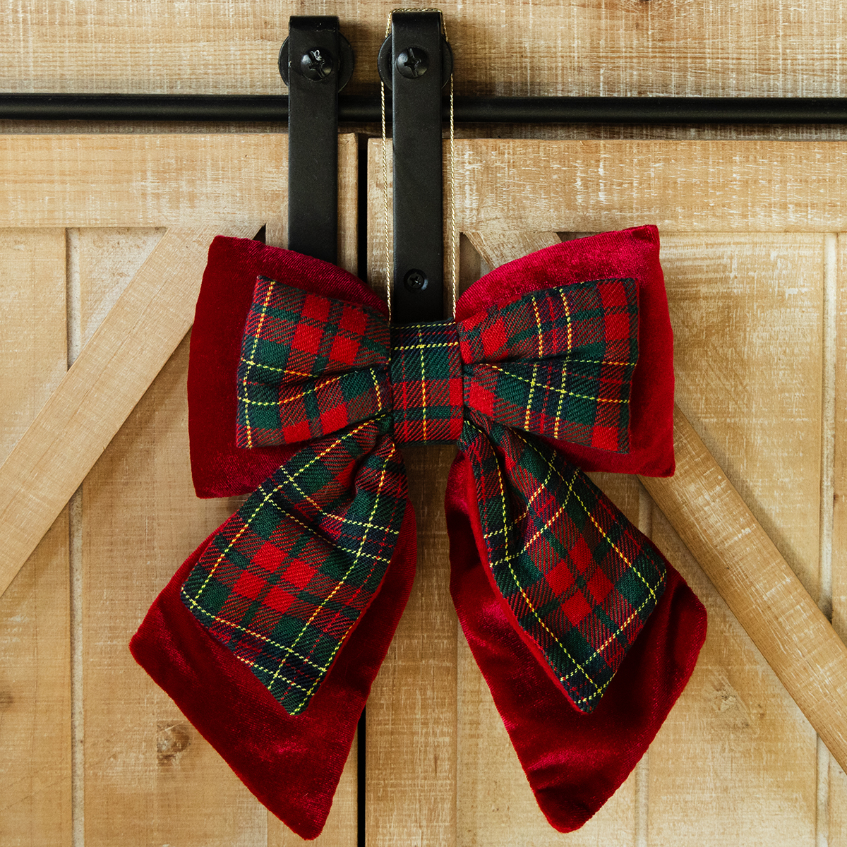 Röd rosett skotsk ruta att hänga upp: snygg juldekoration för varje rum, dörrkransen eller fönstret