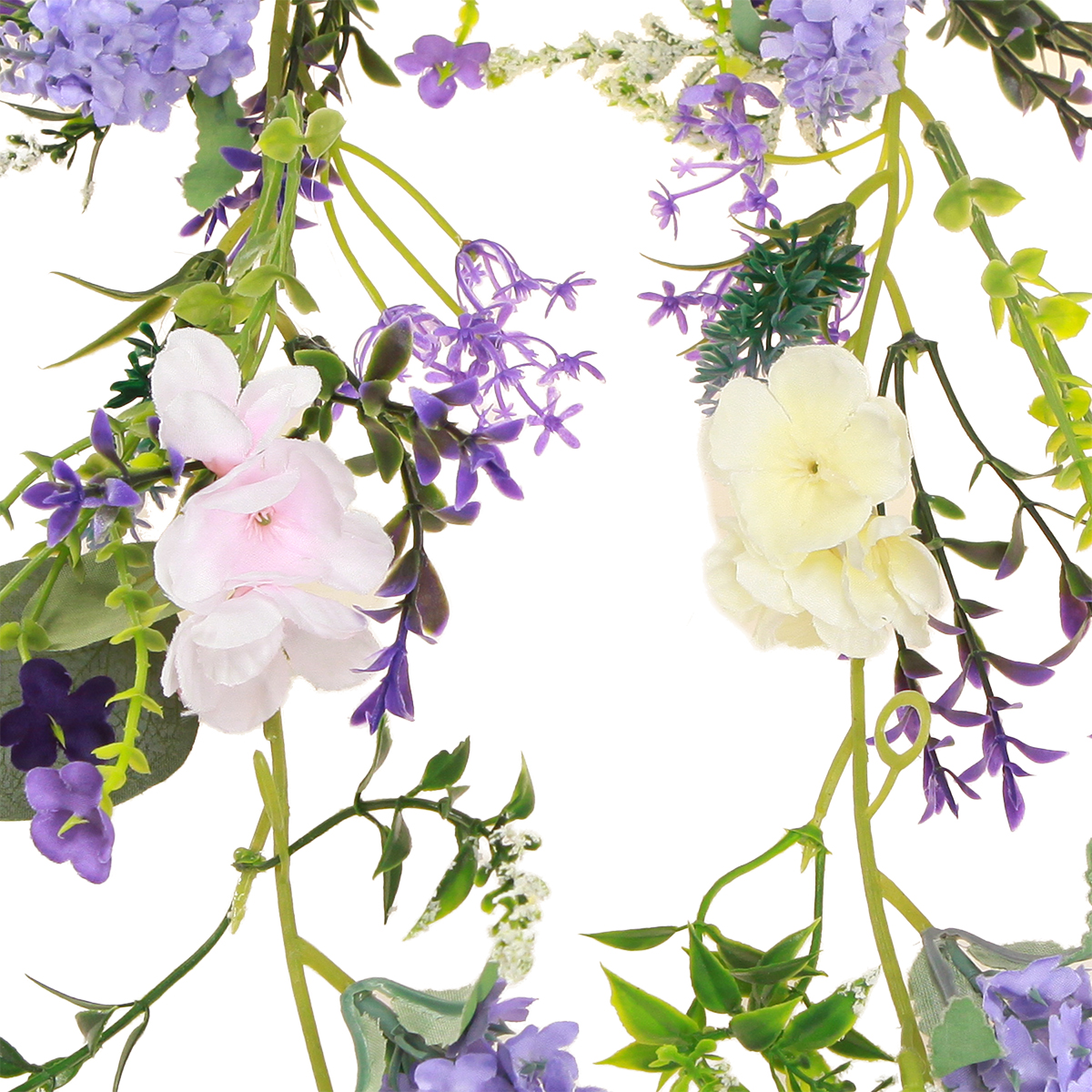 Produktnamn: Romantisk blomstergirlang i lila rosa vit L194cm 2st