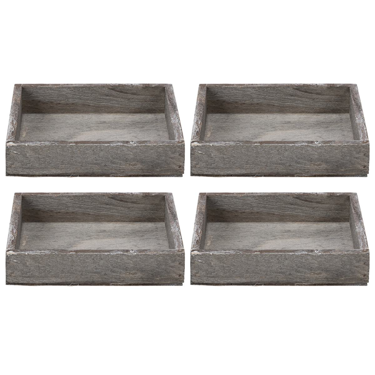 Letar du efter ett elegant sätt att ge ditt bord eller din inredning en speciell touch? Något enkelt men ändå iögonfallande? Vår rustika träbricka är precis vad du behöver! Denna snygga accessoar kombinerar charmig vintagekänsla med funktionalitet – den perfekta blandningen för dig som uppskattar naturligt vacker dekoration. Oavsett om den används på matbordet med ljus, som en dekorativ bas för växtarrangemang eller för att förvara dina favoritaccessoarer som smycken, är denna fyrkantiga bricka otroligt mångsidig. Den grå trätonen och den omsorgsfullt utformade, rustika finishen gör varje möbel unik. Och det bästa? Du får fyra av dessa underbara brickor! Praktiska, eller hur?