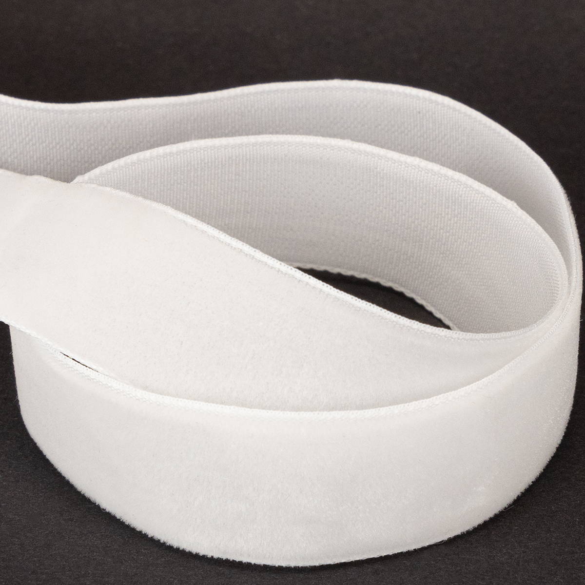 Sammetsband, presentband, dekorativt band, vit sammet, 20 mm brett, 10 m långt