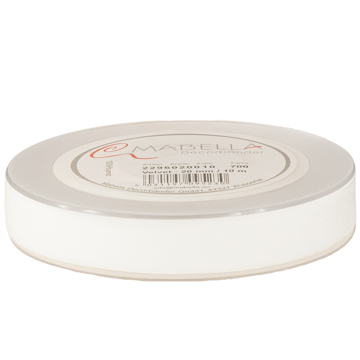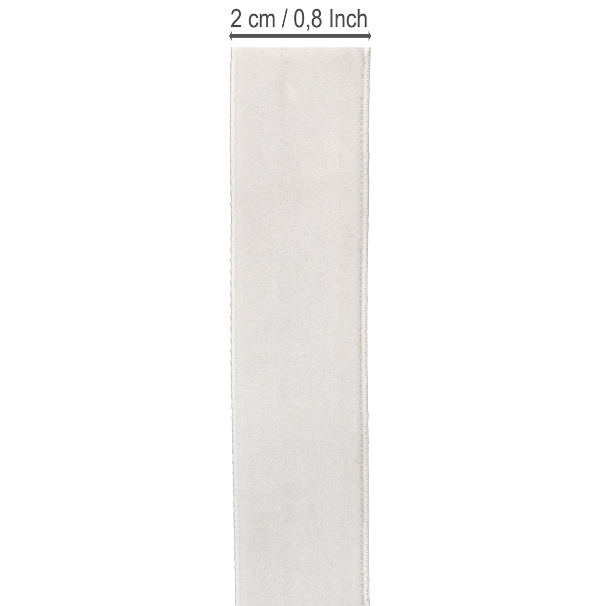 Produktnamn: Sammetsband, presentband, dekorativt band, vit sammet, 20 mm brett, 10 m långt