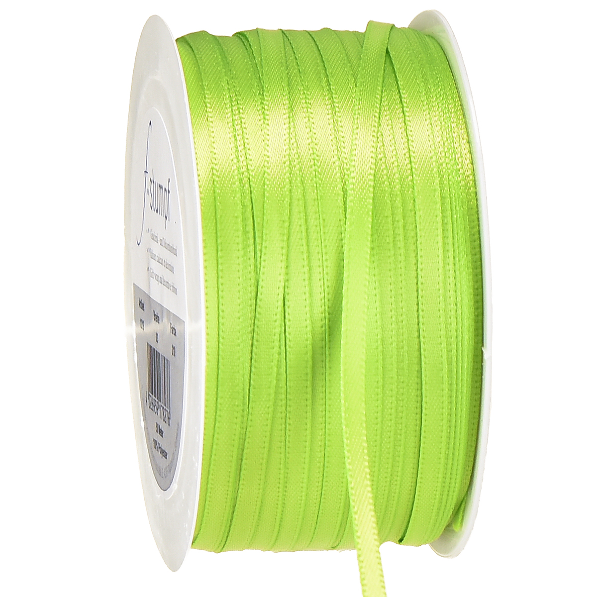 Det ljusgröna presentbandet finns med en ungefärlig bredd av 3 millimeter och en längd på cirka 50 meter på en plastspole. Den är tillverkad av 100% polyester.