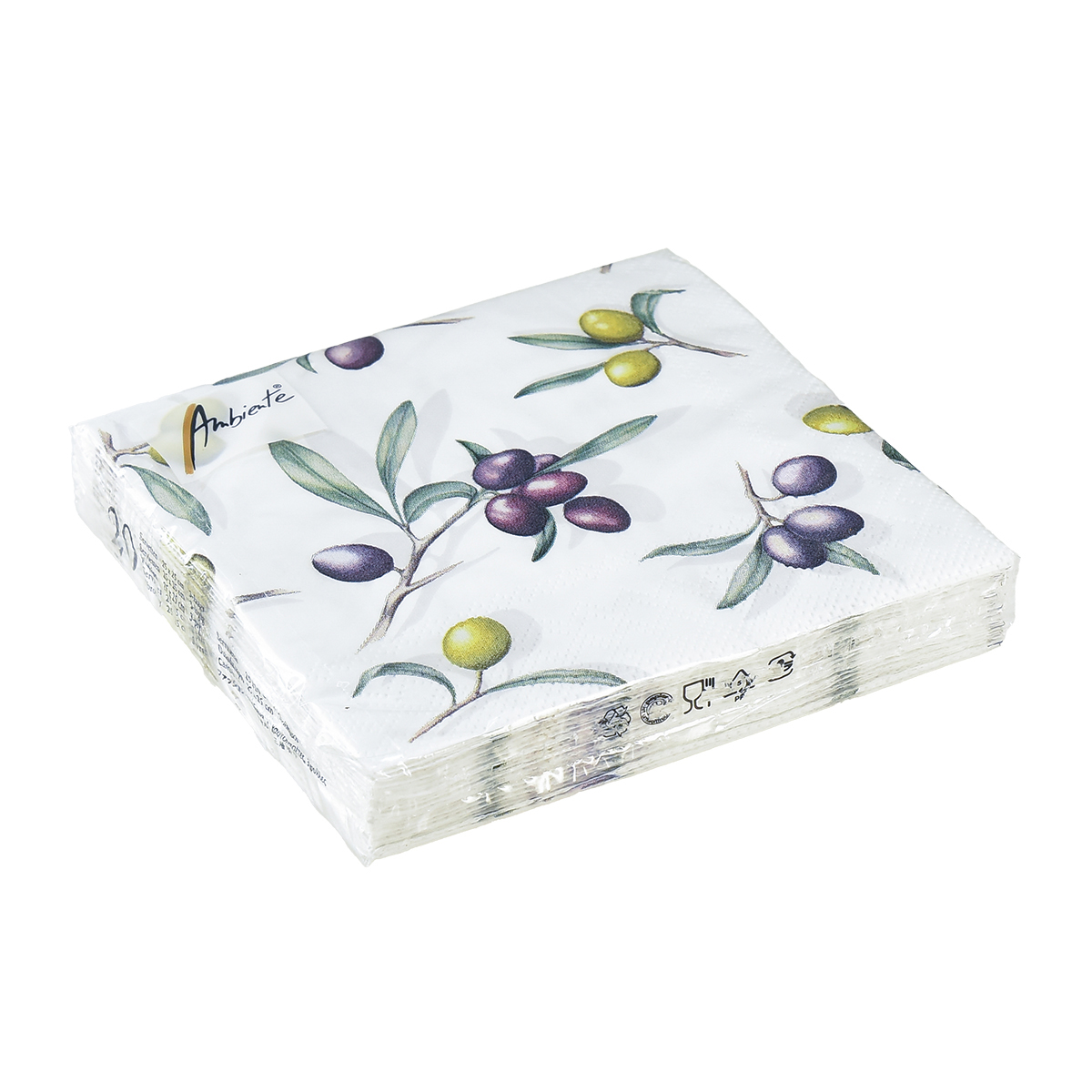 I delikat gulgrönt och lila, hängande på gröna grenar, visas dessa oliver på sommarservetter.Oavsett om det är för grillning eller lunch - dessa pappersservetter får dig att vilja äta medelhavsmat.Använd servetterna med motiv bredvid dina skålar med oliver och antipasti, som på en semester i Grekland eller Italien.