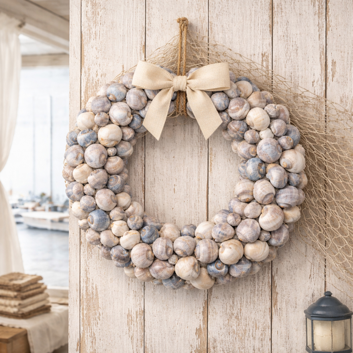 Snigelkrans för upphängning, dekorativ krans, maritim stil, Nathai, Ø35cm