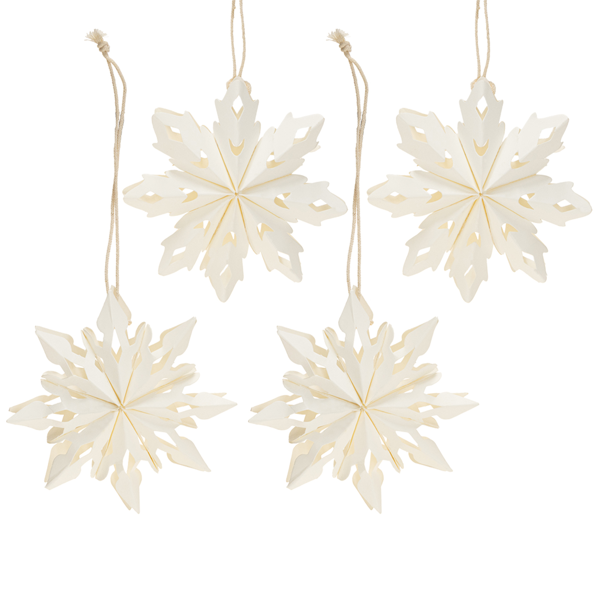 Snöflingepappersdekorationer för upphängning, vita, 10 cm, 4 stycken