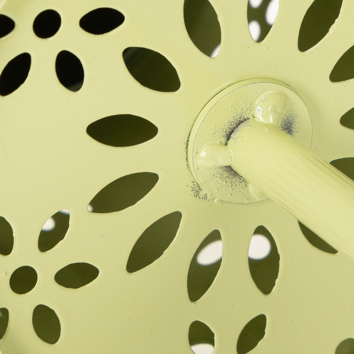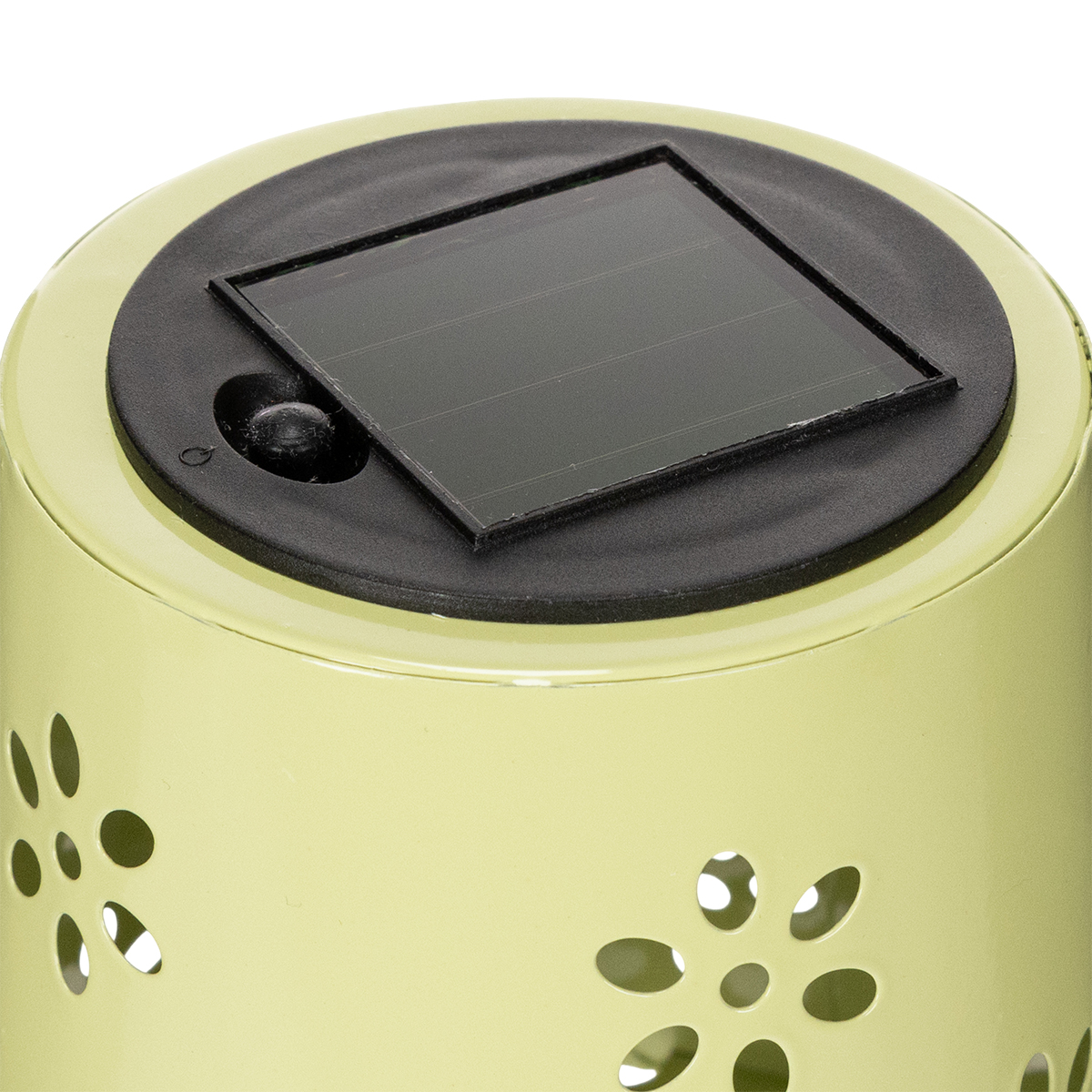 Kombinationen av romantisk design och modern teknik gör denna solcellslampa till en höjdpunkt för din utomhusbelysning. Det delikata blommotivet, som återspeglas i både lampskärmen och det övergripande hantverket, ger lampan en lekfull touch. Speciellt på kvällen, när det varma ljuset lyser igenom de invecklade mönstren, skapas en magisk atmosfär. Den gröna nyansen ger en naturlig touch som kompletterar växter och utomhusarrangemang perfekt. Perfekt för naturälskare och de som värdesätter hållbarhet: solcellstekniken laddar effektivt det medföljande uppladdningsbara AAA-batteriet under dagen, vilket gör att lampan tänds automatiskt efter mörkrets inbrott. Helt utan kablar eller externa strömkällor! Med en höjd på 28 cm är lampan varken för liten eller för imponerande och passar perfekt på trädgårdsbord, balkonghyllor eller dekorativa sidobord. Den skulle också se underbar ut på en fönsterbräda eller en liten pall framför ett lusthus. Tack vare det slitstarka metallmaterialet kan du njuta av denna eleganta lampa i många år framöver – även vid regelbunden utomhusanvändning. Tips: Denna lampa smälter perfekt in i en lantlig eller vintagestil. Om du vill kan du kombinera den med små krukor med vildblommor eller andra blommiga dekorativa element. Den blir då mittpunkten i din sommarinredning!