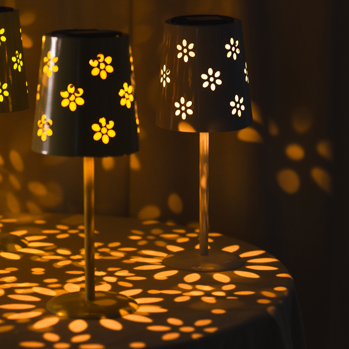 Solcellsdriven bordslampa med LED – Stämningsfull belysning i blommönster