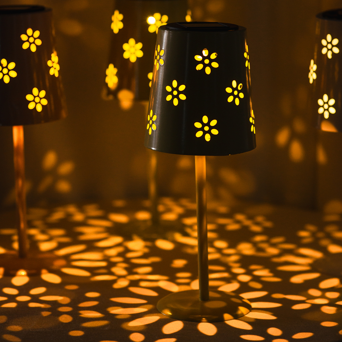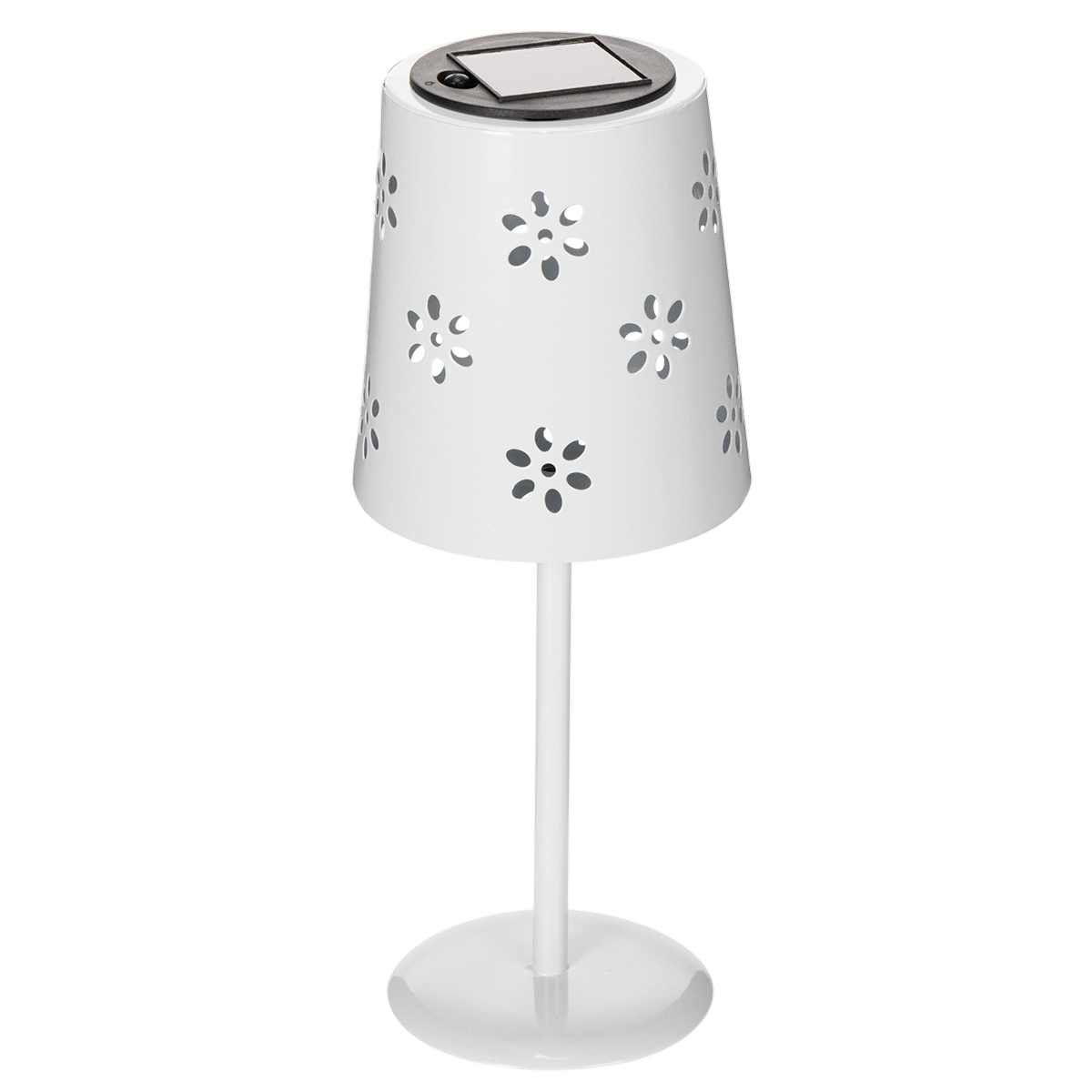 Denna solcellsdrivna bordslampa med sitt blommönster är mer än bara en ljuskälla. Den är en sann stilikon för ditt utomhusutrymme! Tillverkad av högkvalitativ metall och i elegant vit färg, utstrålar den en sofistikerad touch som är både modern och lekfull. De invecklade blommönstren på lampskärmen är inte bara dekorativa utan projicerar också vackra ljusspel på din omgivning på kvällen – helt enkelt magiskt! Oavsett om det är för en mysig kväll på uteplatsen eller som en charmig bordsdekoration på en trädgårdsfest, kommer denna lampa att göra ditt utomhusområde ännu mer inbjudande.