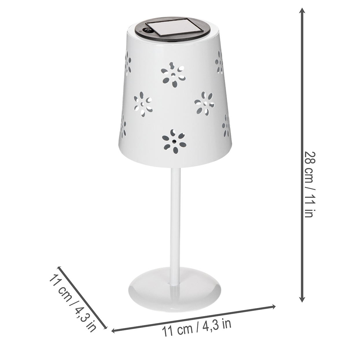 En ljummen sommarkväll, en mild bris, glittrande stjärnor – och så badar det varma, inbjudande ljuset från en kärleksfullt designad solcellslampa din omgivning i en romantisk atmosfär. Det är precis vad denna solcellslampa med sitt blommönster erbjuder. Denna dekorativa höjdpunkt kombinerar stil och funktionalitet. Oavsett om den är på balkongen, uteplatsen eller i ett hörn av trädgården – ger denna lampa stämningsfull belysning, allt utan sladd. Låt den bara njuta av solen under dagen och njut av den på kvällen. Låter inte det underbart enkelt?