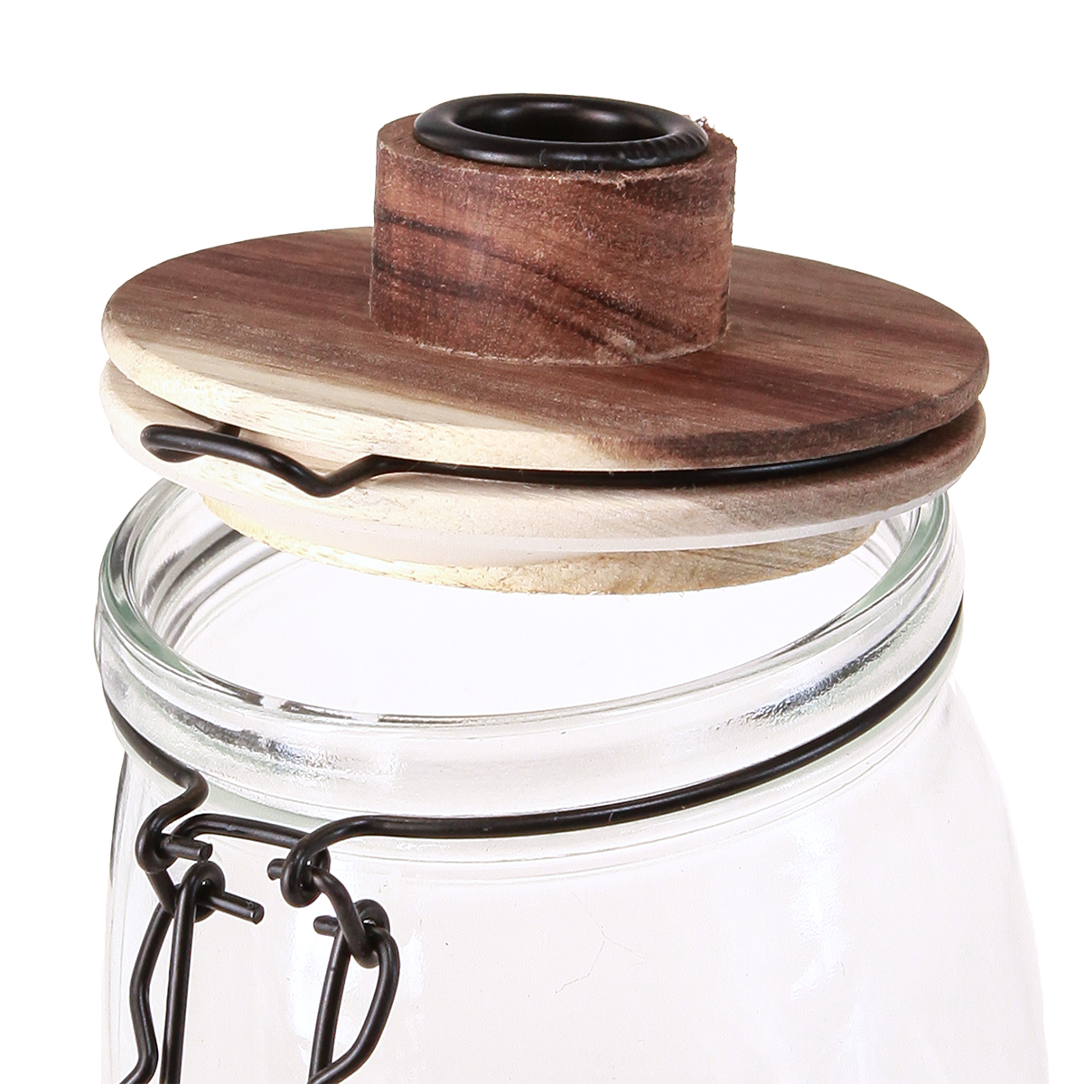Letar du efter ett snyggt tillskott till ditt vardagsrum? Vår burkljusstake med trälock och stängning kombinerar rustik design med en touch av naturlighet, vilket skapar en varm, inbjudande miljö för alla tillfällen.