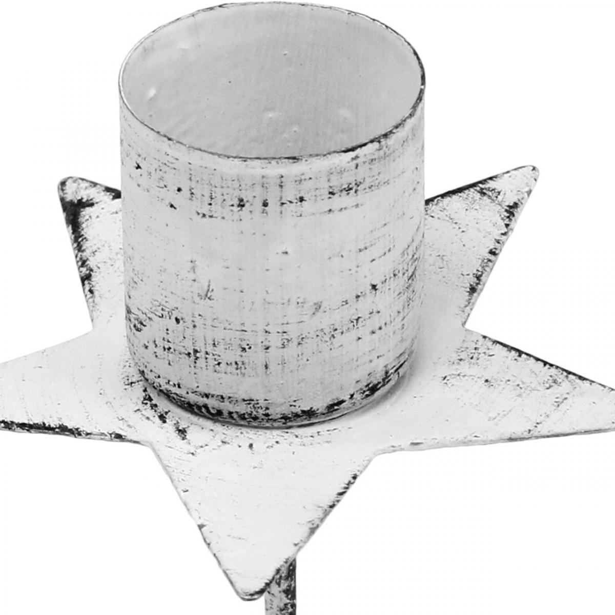 Stjärnljusstake för uppklistring i metall vit shabby chic 6 cm 4 st