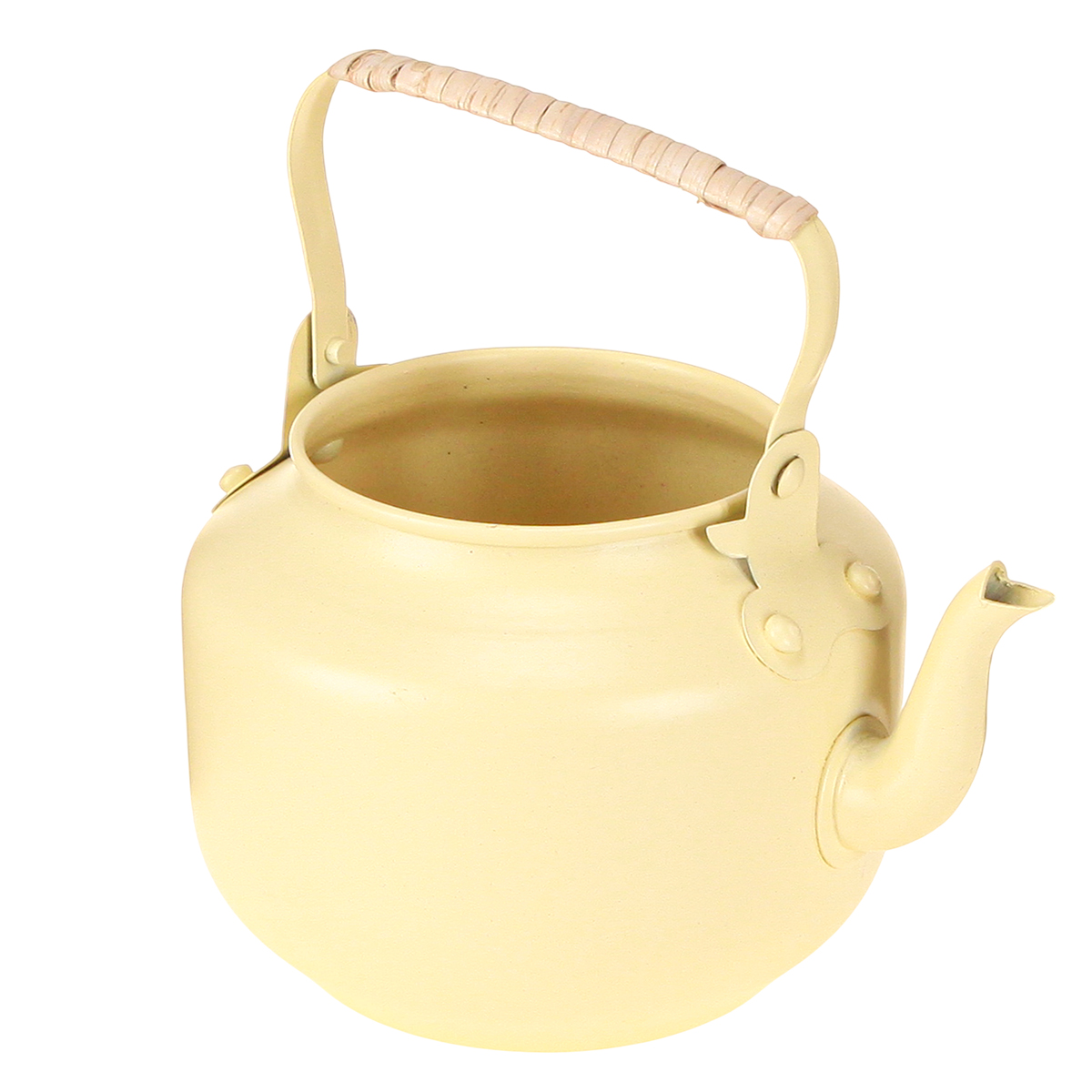 Denna dekorativa gula tekanna är ett vackert exempel på traditionellt hantverk och genomtänkt design i lantlig stil. Tillverkad av robust metall utstrålar den en känsla av hållbarhet som är både synlig och påtaglig. Den mjuka krämfärgen med sina subtila gula undertoner kompletterar en mängd olika inredningsstilar – från rustik retrocharm till modern shabby chic. En särskilt anmärkningsvärd detalj är trähandtaget inklätt i naturmaterial, vilket inte bara är visuellt tilltalande utan också bekvämt att hålla i.