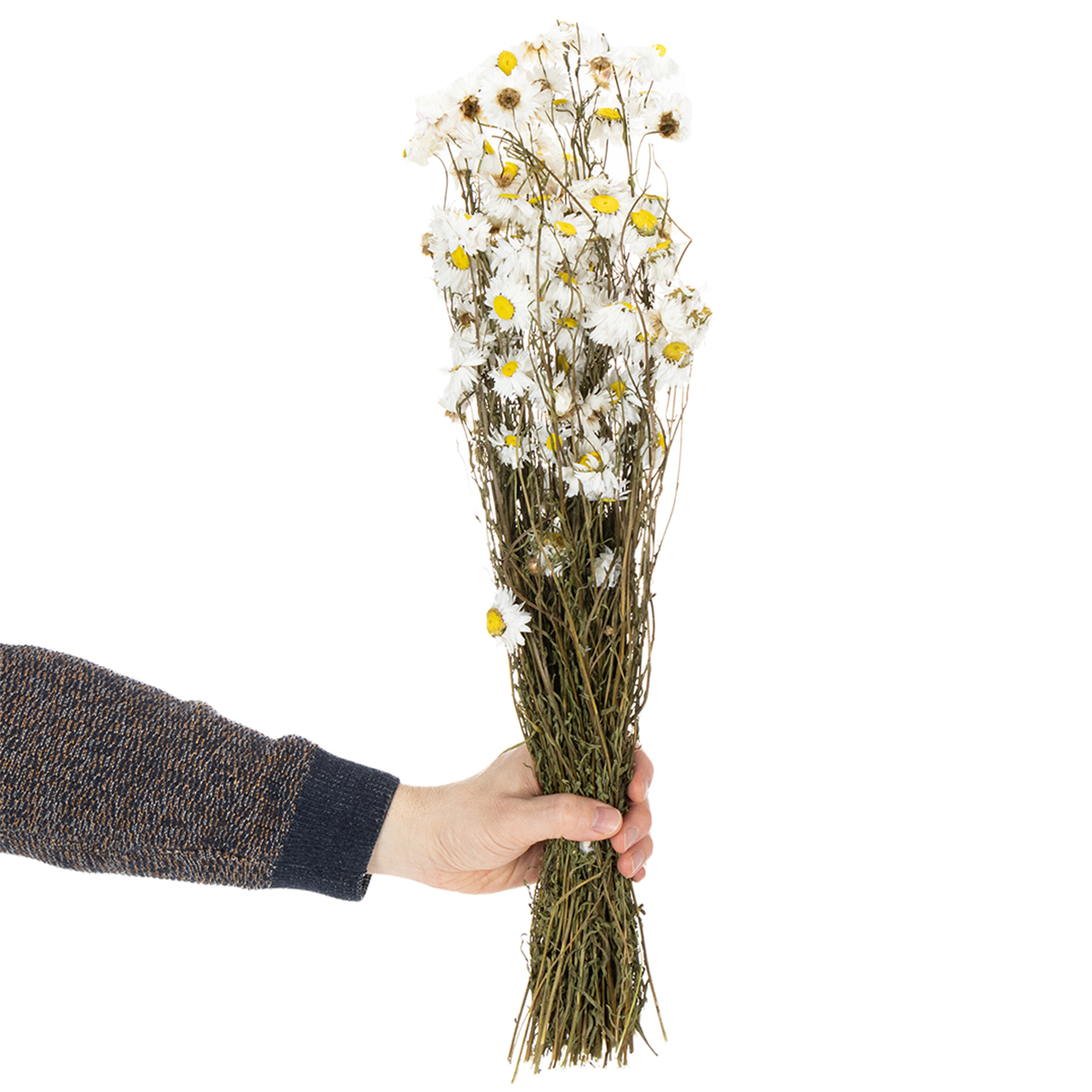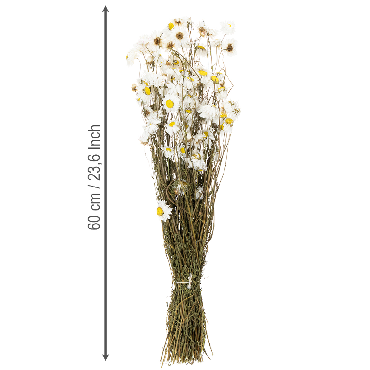 Torkade Acroclinium-blommor, vita blommor, torkat blomsterarrangemang, 60 cm, 80 g