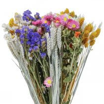 195 krDenna underbara torkade blombukett består av halmblommor i rosa, lila havslavendel, naturfärgad havre och rosafärgad veteöron. Den torkade vildblombuketten kommer färdigknuten och inlindad i ett dekorativt kraftpapper som är färgat rosa på utsidan. Lägg buketten med torkade blommor som den är i en vas eller lossa knippen så att du kan använda de torkade blommorna på en mängd andra sätt för pyssel. Du kan skapa magnifika buketter av...