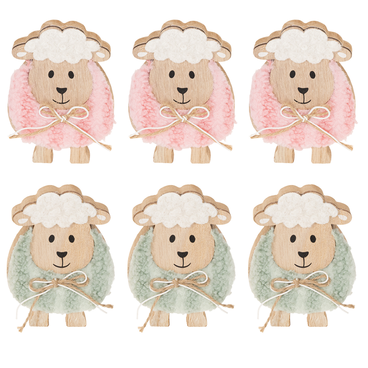 Trädekoration av får, söt dekorativ figur för vår och påsk, bordsdekoration, 11 cm, 6 stycken