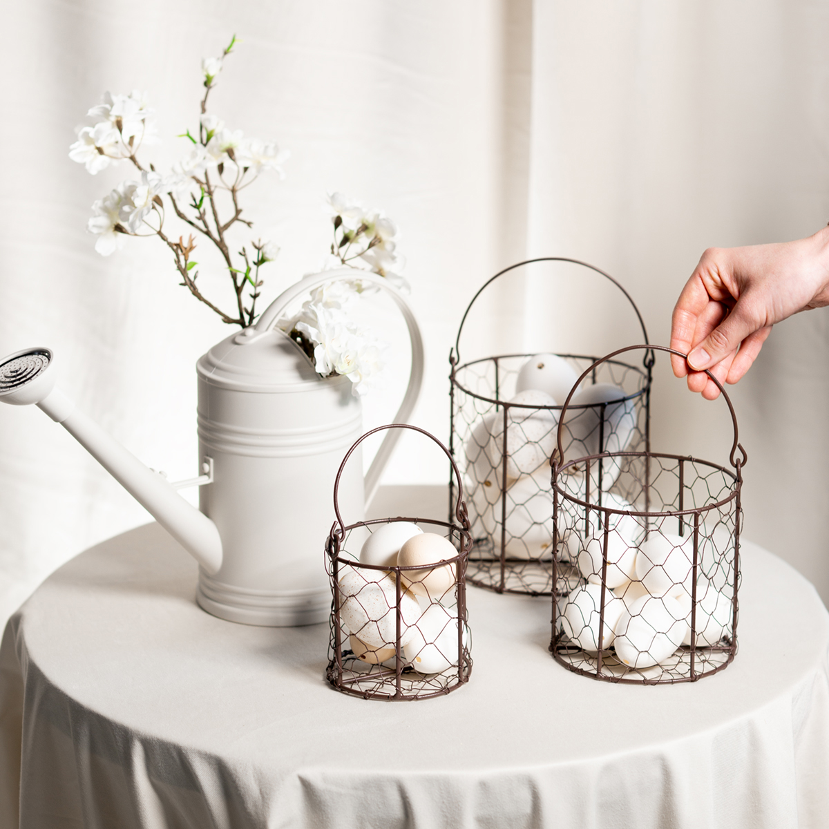 - Nostalgisk trädgårdsdekoration: Arrangera korgarna med mossa och vårblommor.