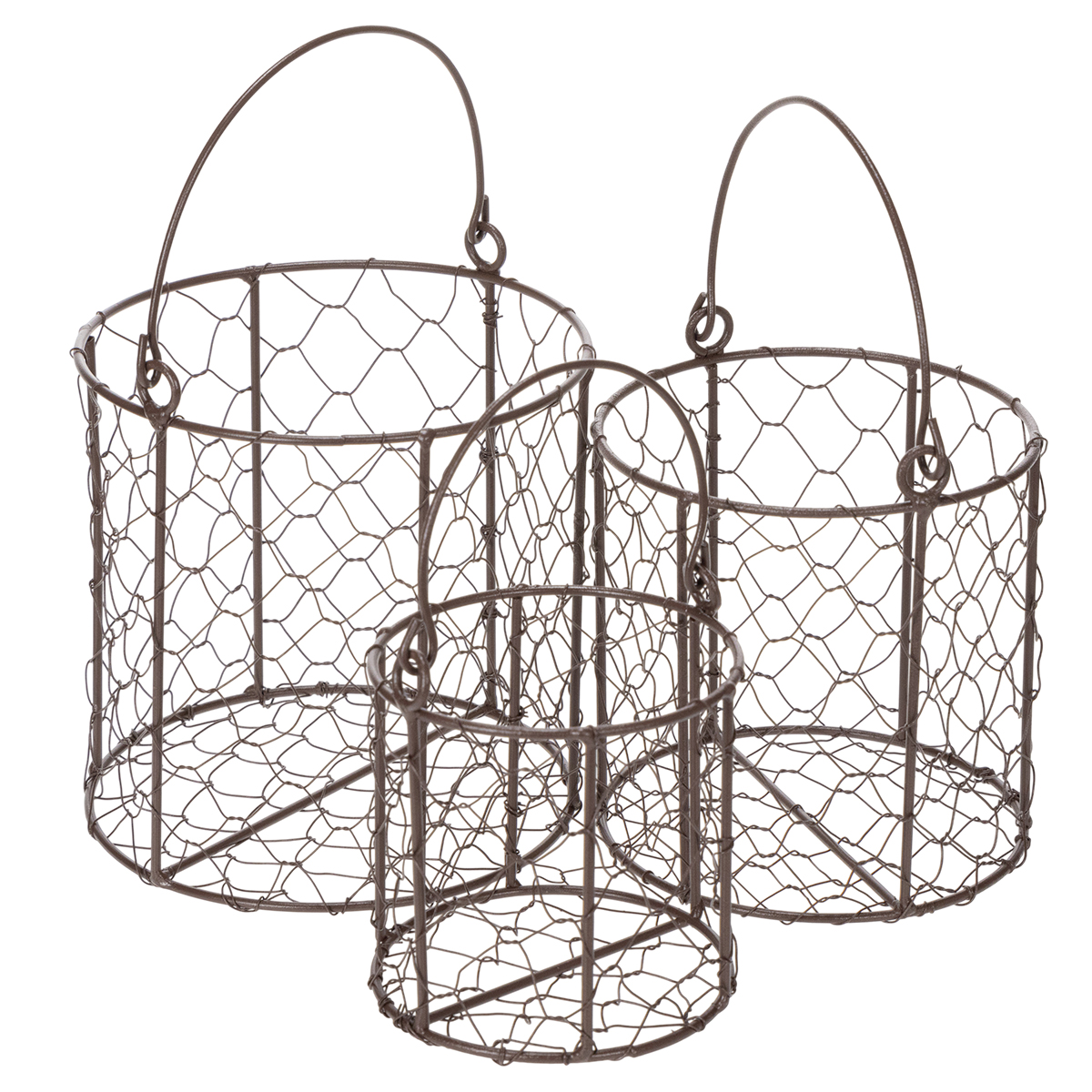 - Set med tre trådkorgar i olika storlekar